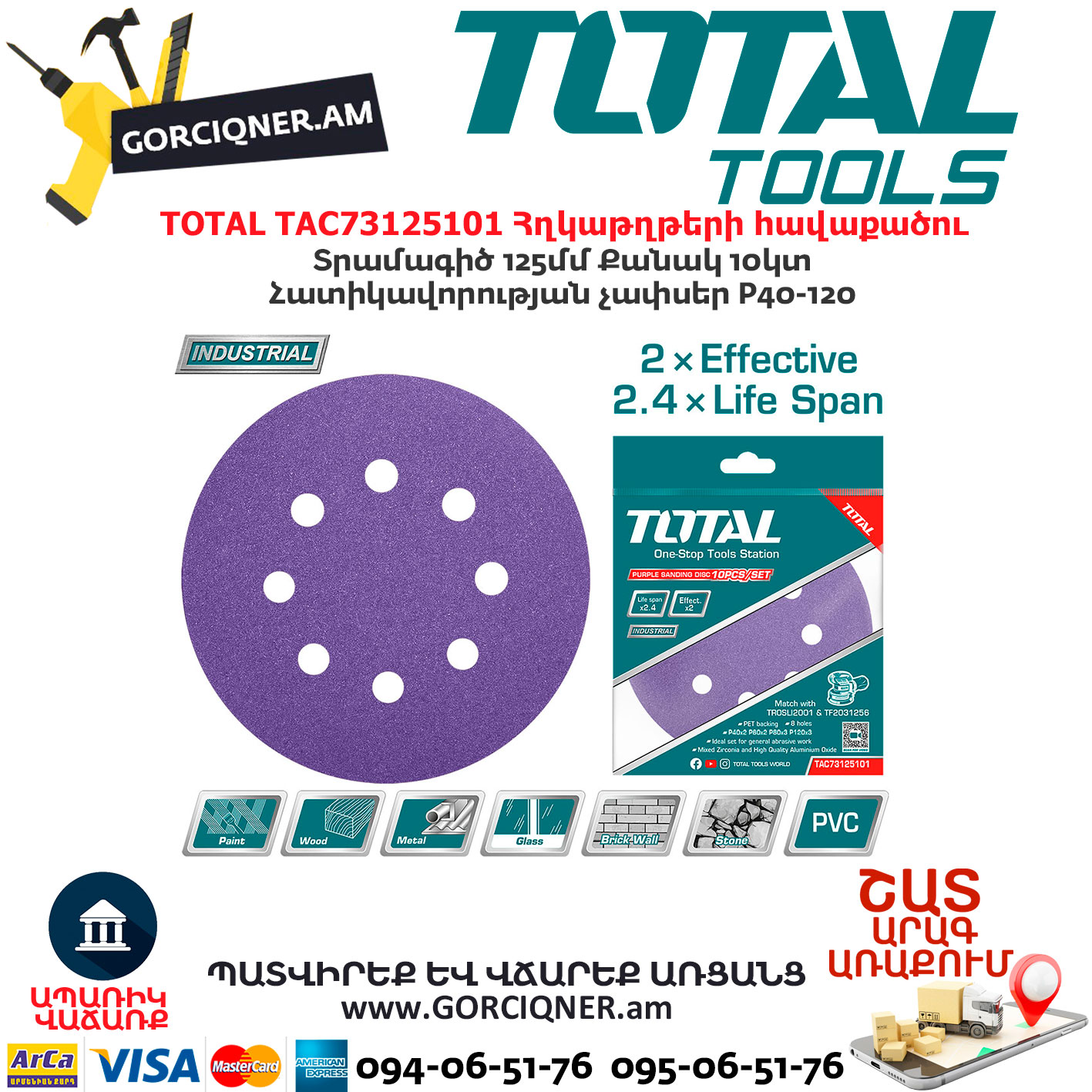 The set of sanding sheets TOTAL TAC73125101 is a replaceable element for sanding machines and is used for processing wood, metal, removing paint and varnish coatings and rust. The sheets are perforated for better removal of sanding dust. The shape is convenient for sanding corners and small areas of the surface. Made of fabric-backed aluminum oxide.