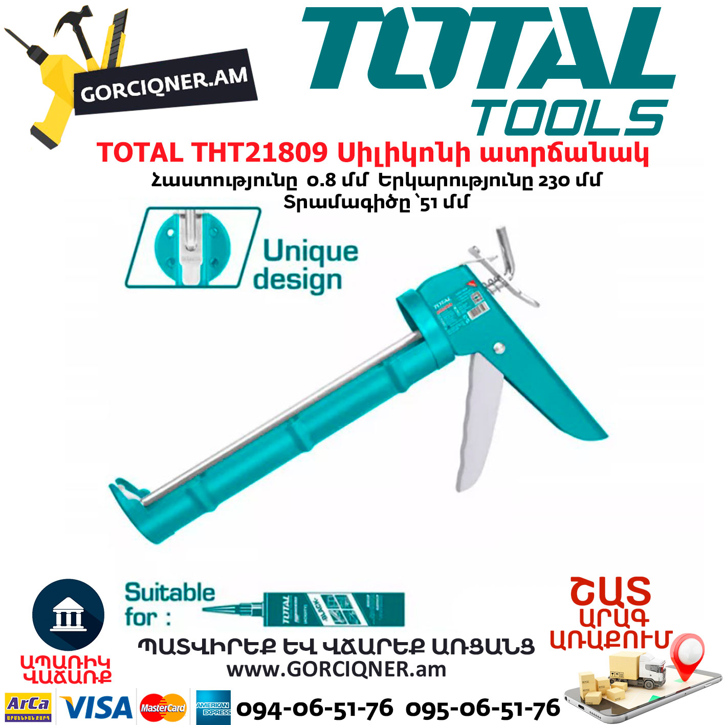 TOTAL THT21809 Caulking Gun 9inch