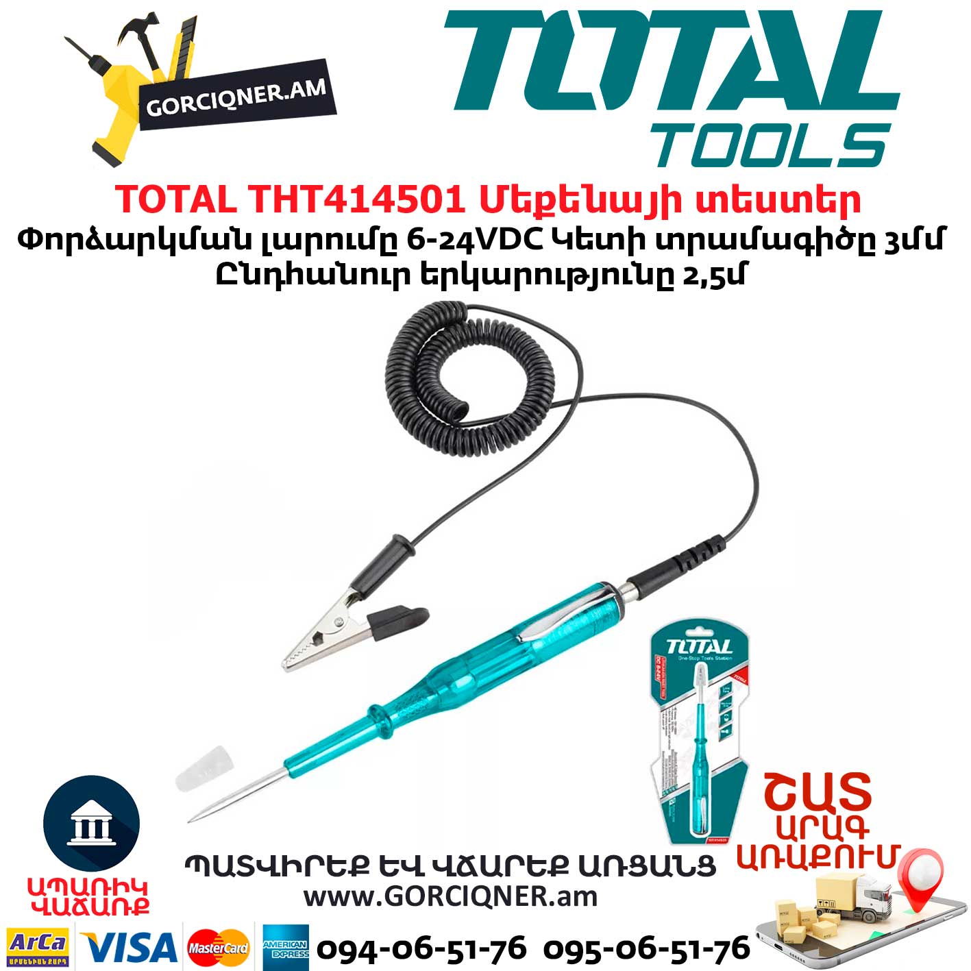 Test voltage: 6-24 V DC.