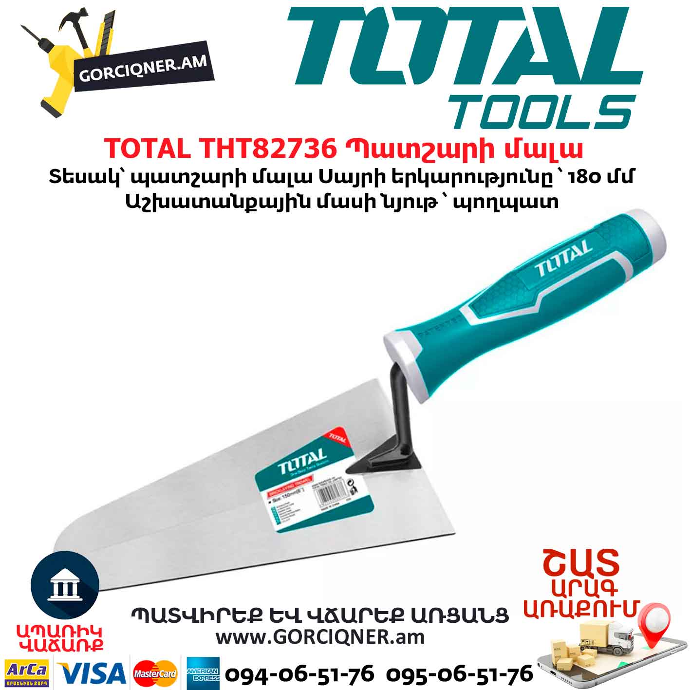 Steel trowel of a stove-maker with a plastic handle TOTAL THT82736 is used for working with sand-cement mortar during the construction of furnaces. The product is convenient to use, provides ease of pouring and leveling the mortar. The trowel consists of two parts steel blade and plastic handle.