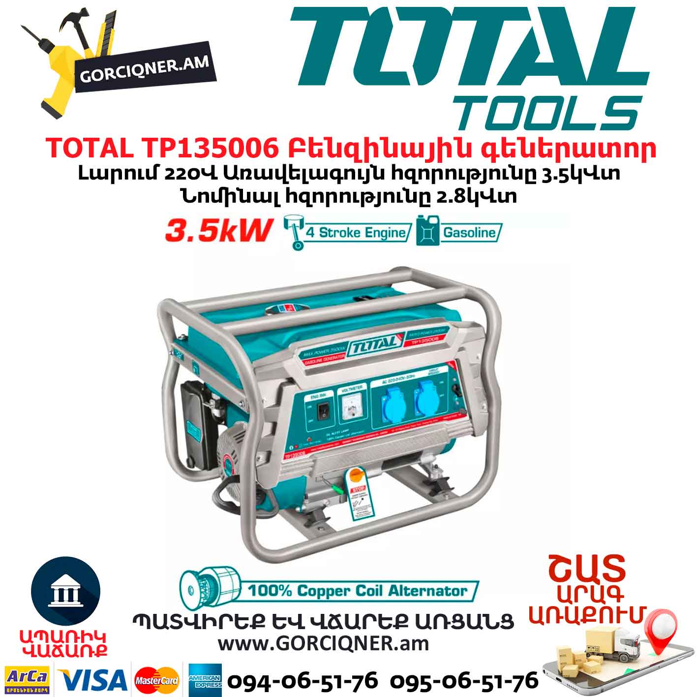 TOTAL TP135006 Gasoline Generator 3500W