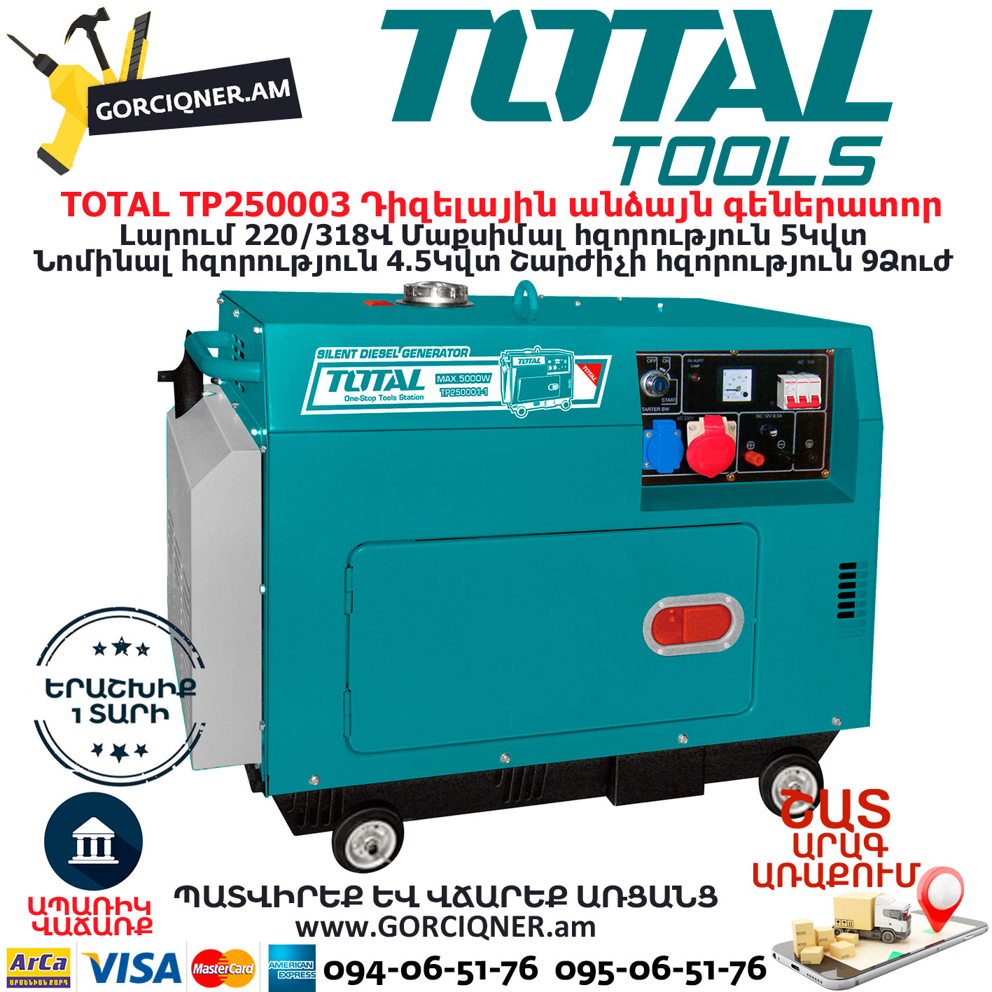 TOTAL TP250003 Diesel Generator Noiseless Three-Phase 5000W/380-415V