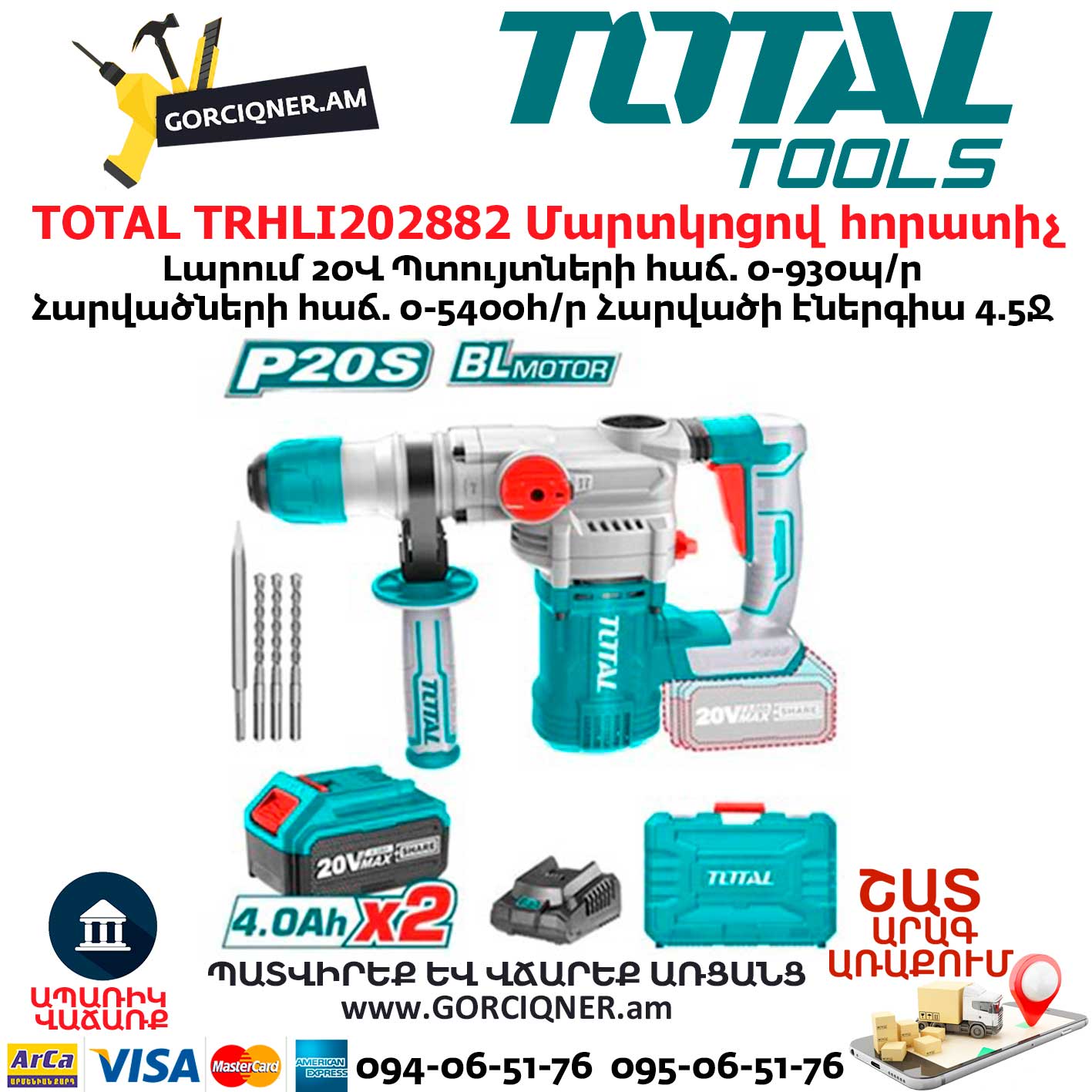 TOTAL TRHLI202882 Cordless Rotary Hammer 20V/4.5J