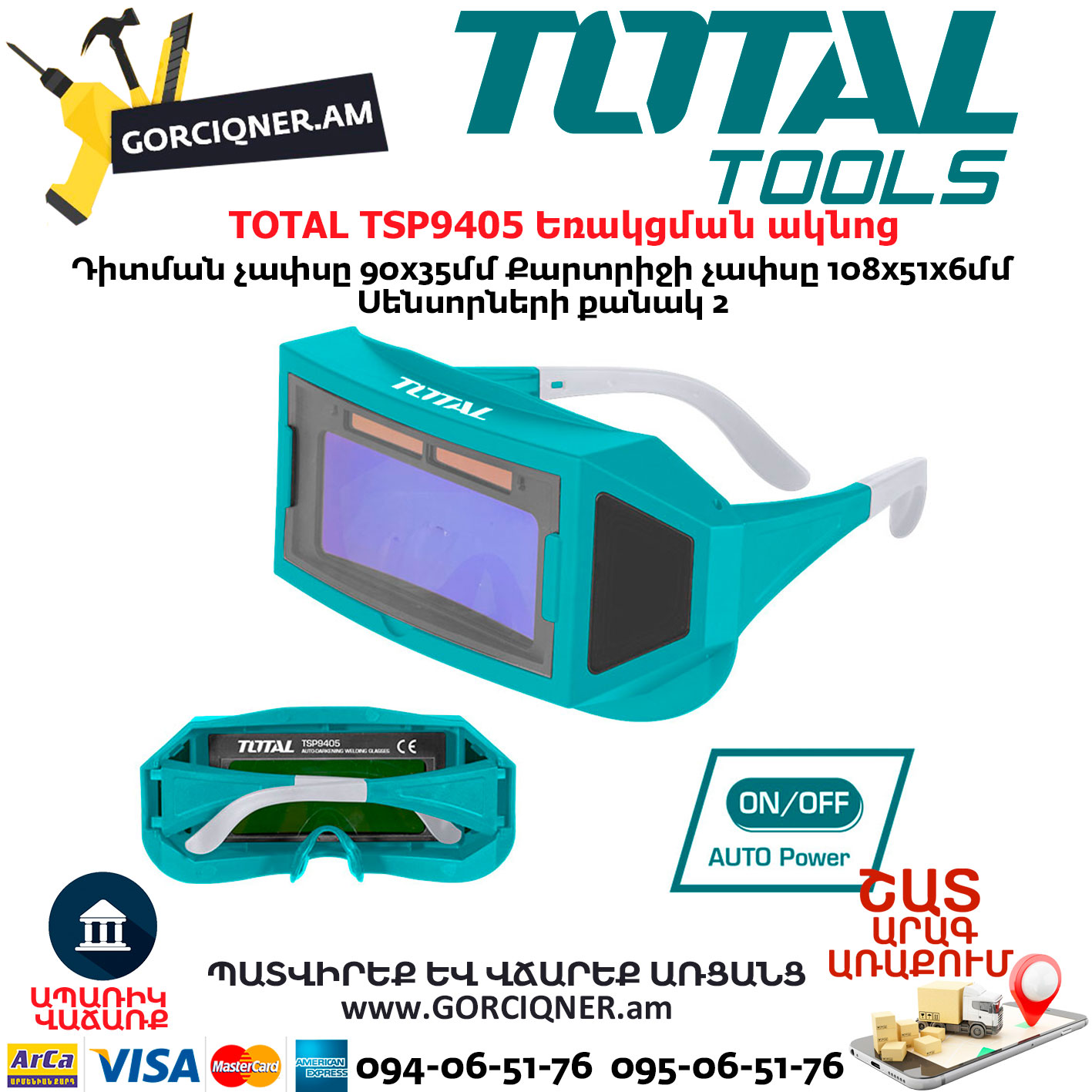 The TOTAL TSP9405 welding glasses is used during welding to protect the eyes from ultraviolet radiation, harsh light and molten metal splashes. It is used for work in a wide range of currents using various welding technological processes. The large viewing window provides the welder with excellent visibility of the object to be welded.