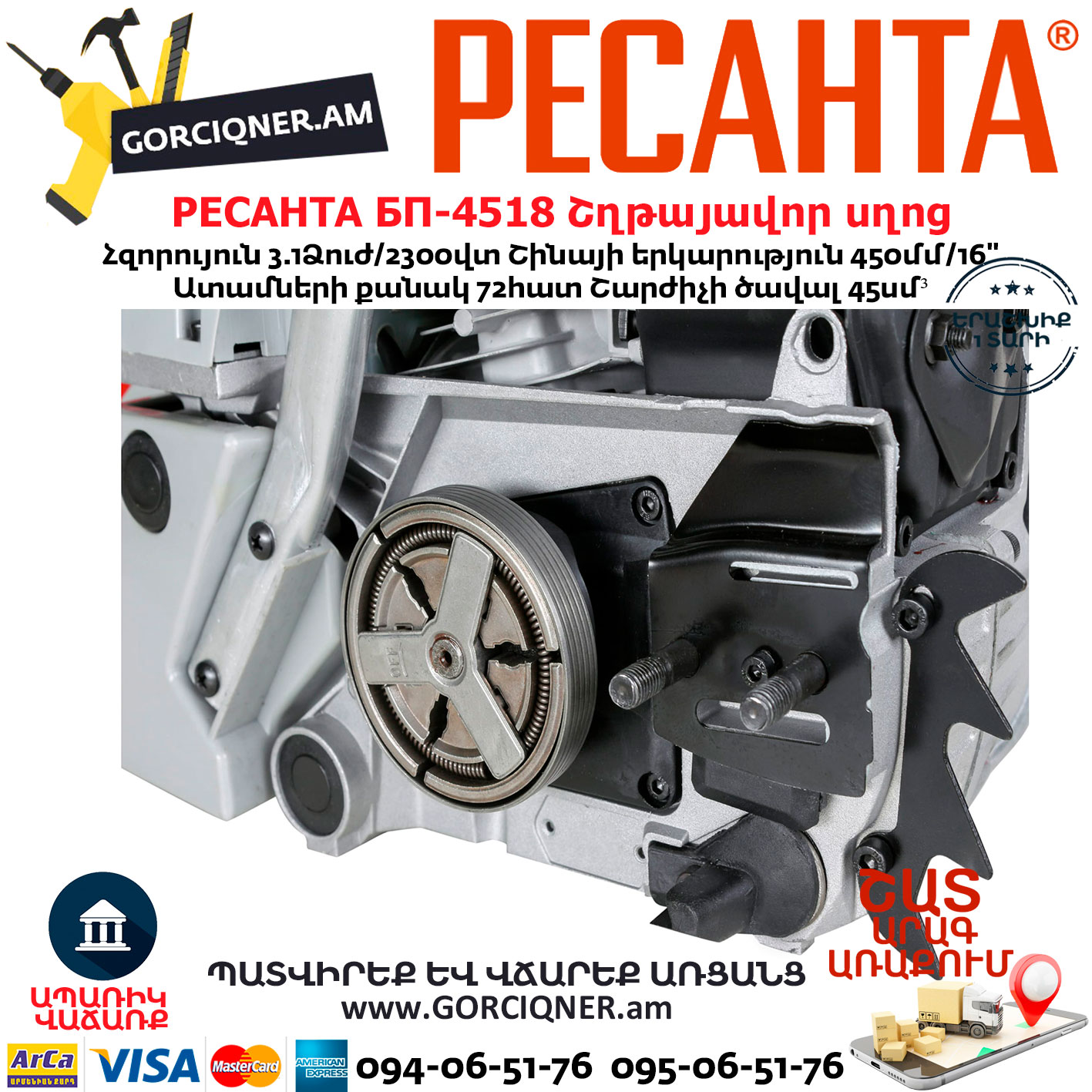 РЕСАНТА БП-4518 Բենզինային շղթայավոր սղոց 450մմ/3.1Ձուժ 70/6/13