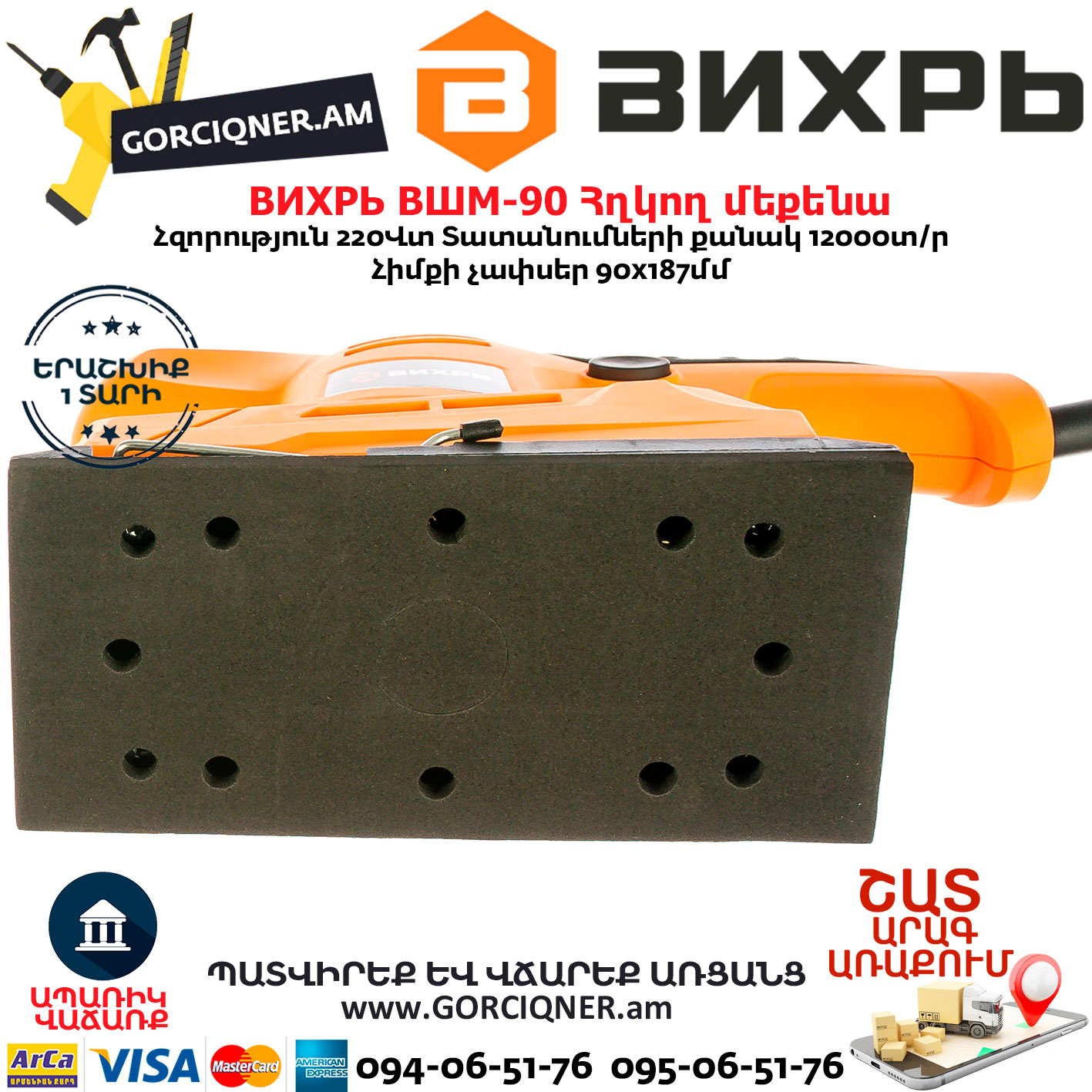 ВИХРЬ ВШМ-90 Վիբրացիոն հղկող մեքենա 220Վտ 72/6/4