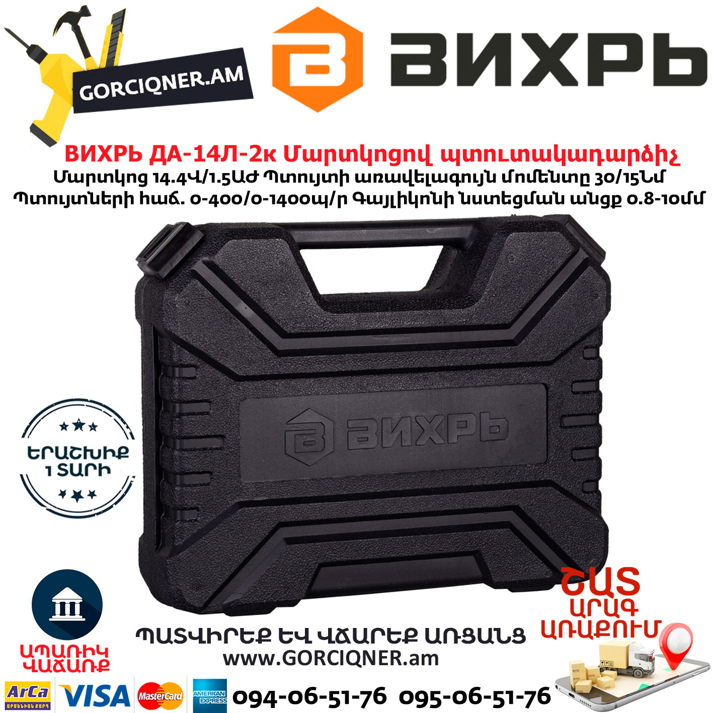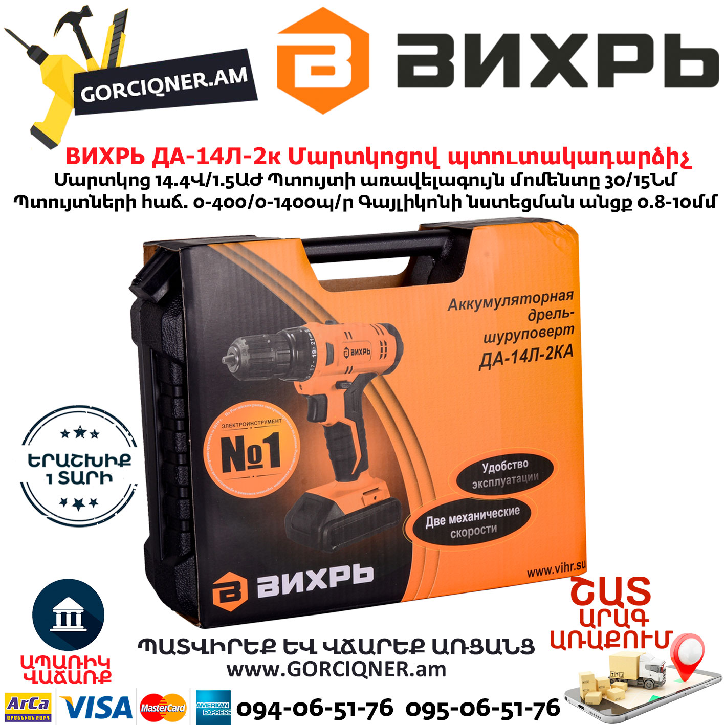 ВИХРЬ ДА-14Л-2к Մարտկոցով պտուտակադարձիչ 14.4Վ 72/14/8