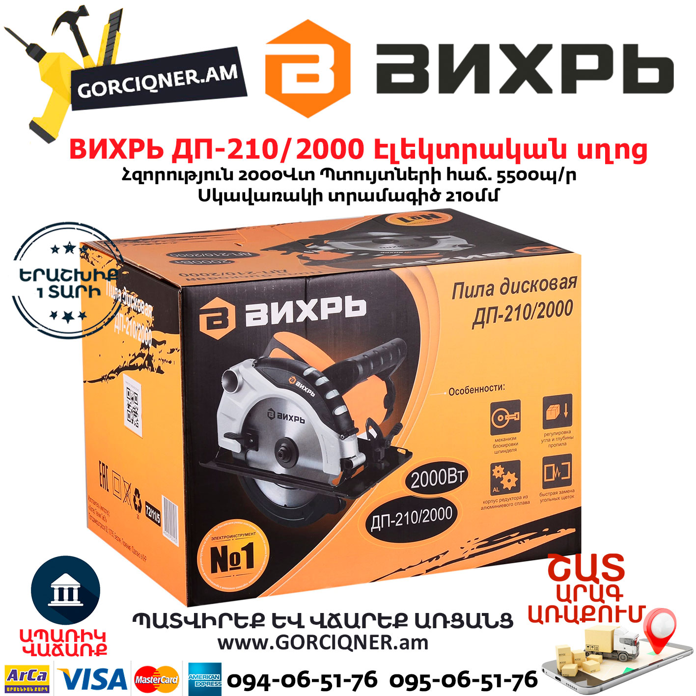 ВИХРЬ ДП-210/2000 Էլեկտրական սկավառակային սղոց 210մմ/2000Վտ 72/11/5