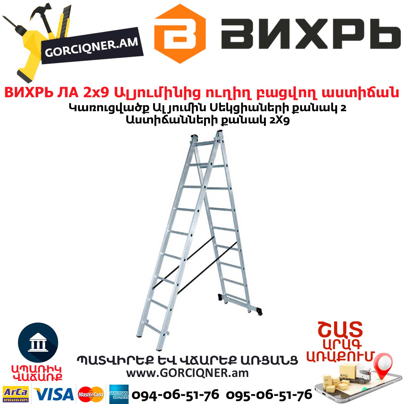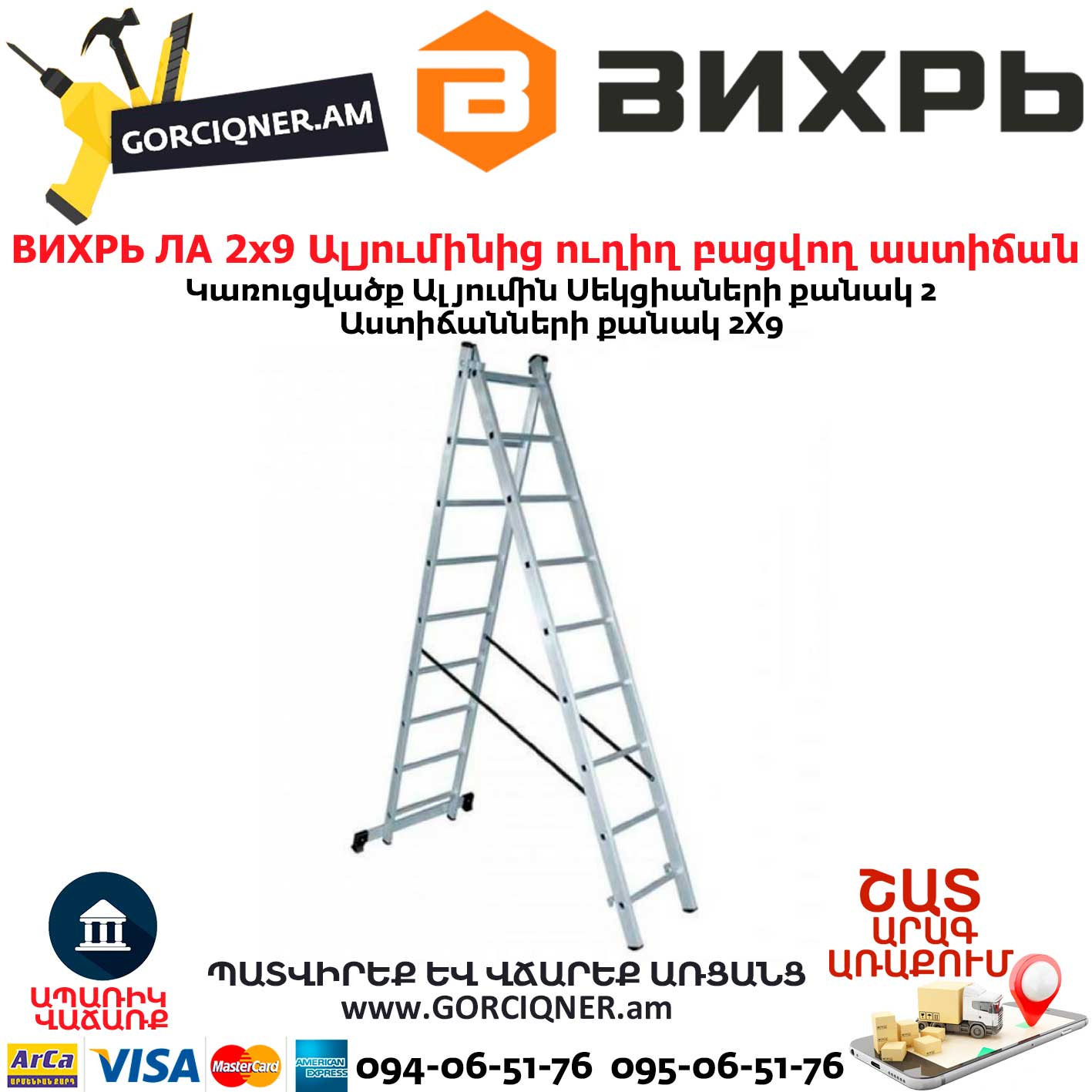ВИХРЬ ЛА 2х9 Ալյումինից ուղիղ բացվող աստիճան