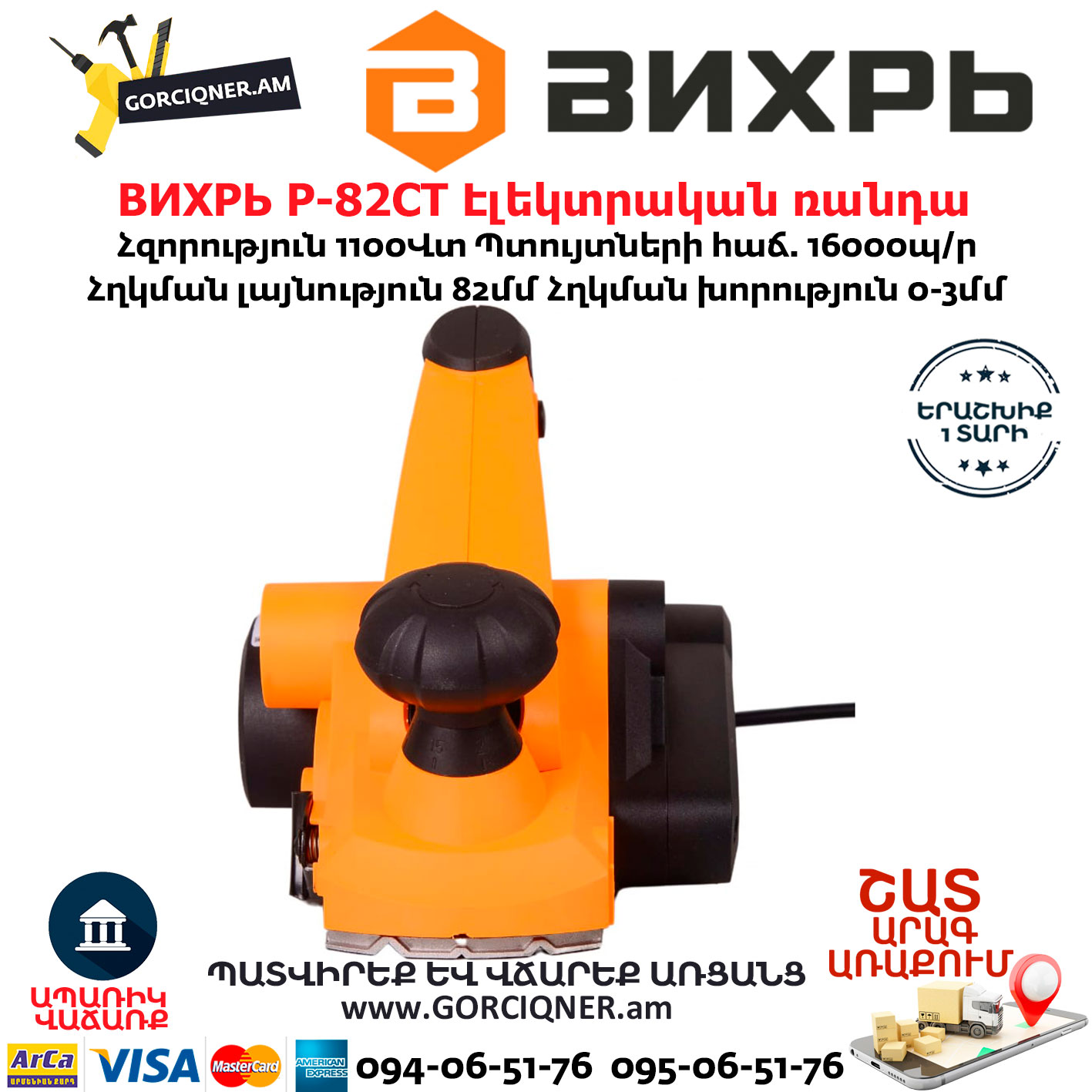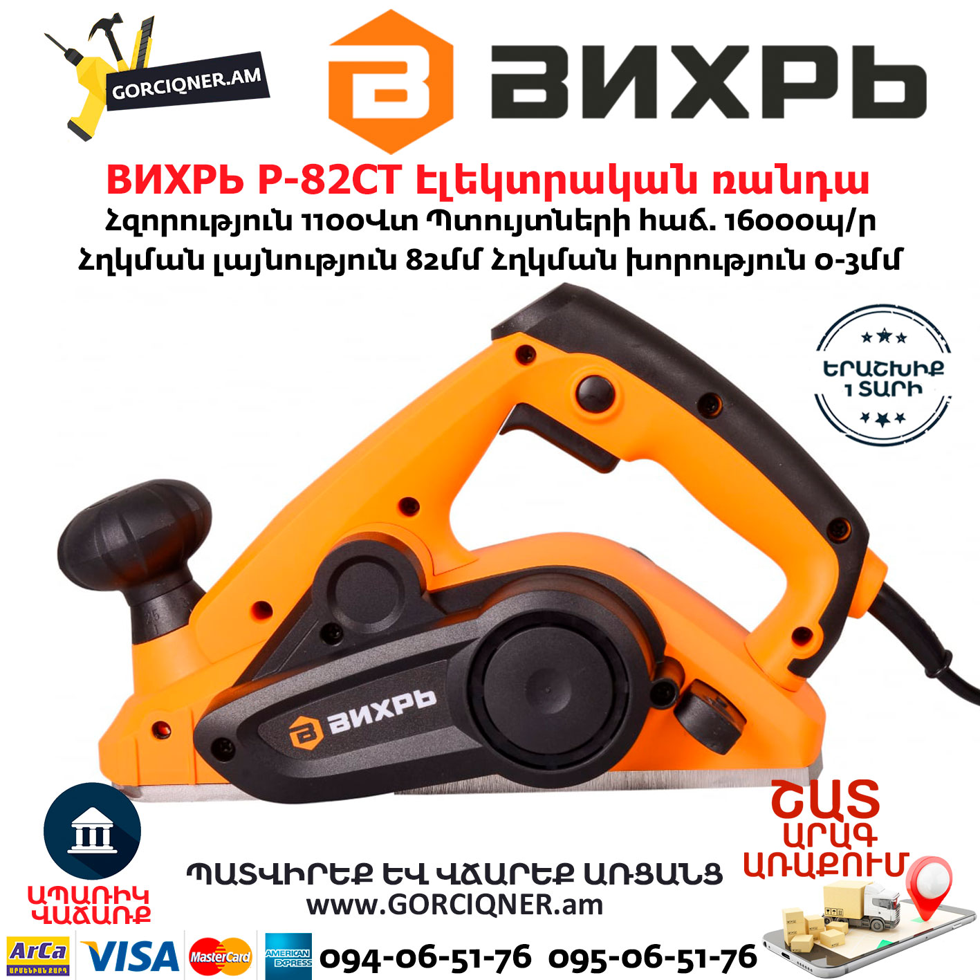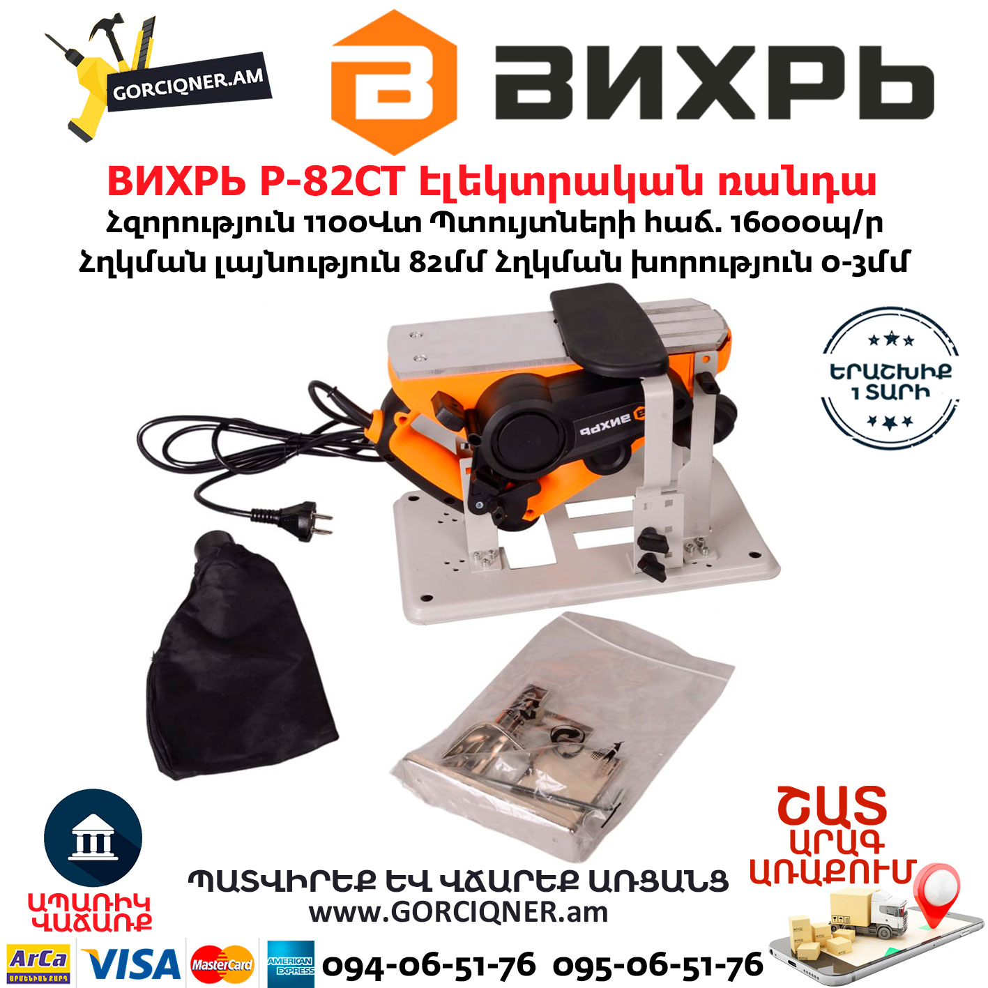 ВИХРЬ Р-82СТ Էլեկտրական ռանդա 82մմ/1100Վտ 72/5/3