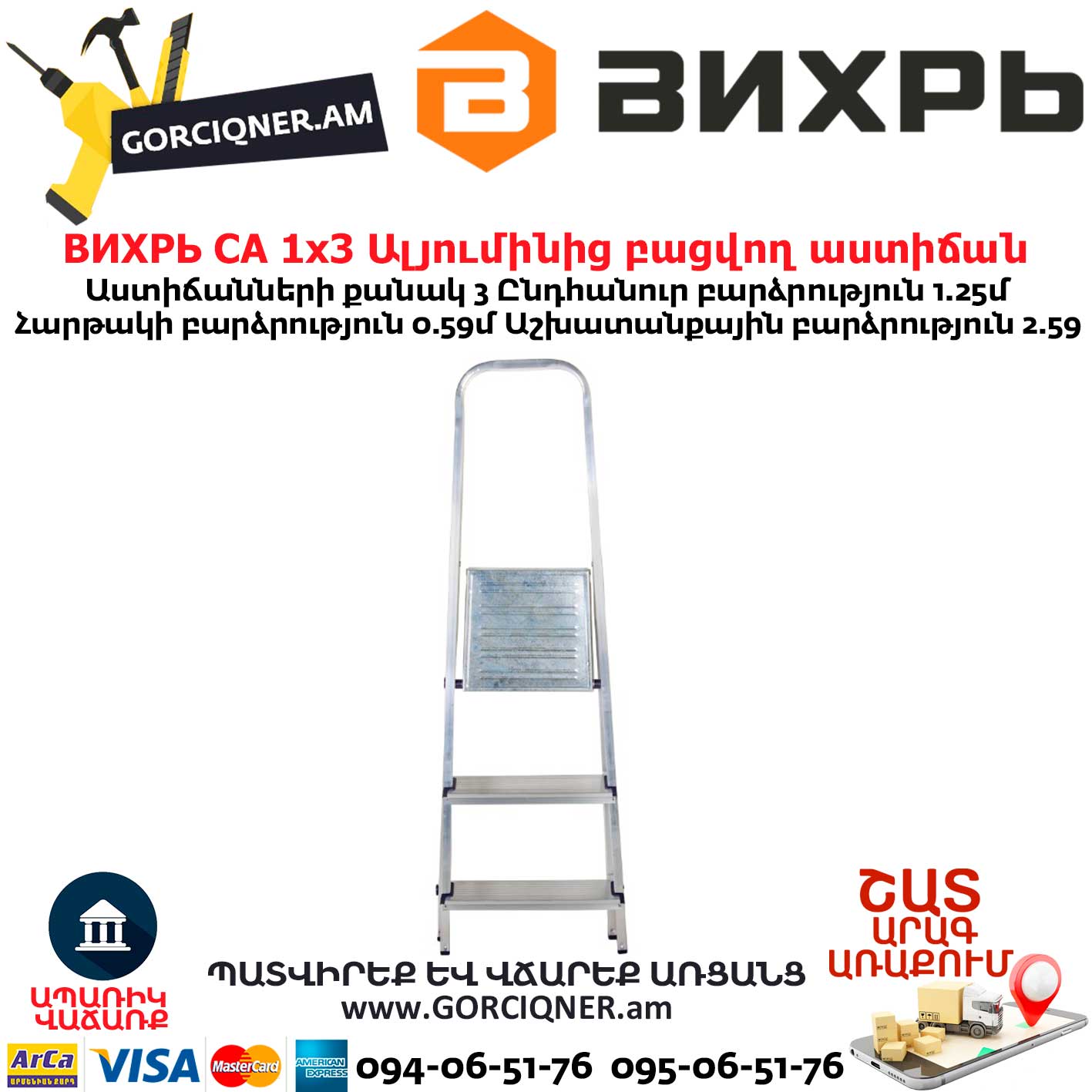 ВИХРЬ СА 1х3 Ալյումինից բացվող աստիճան