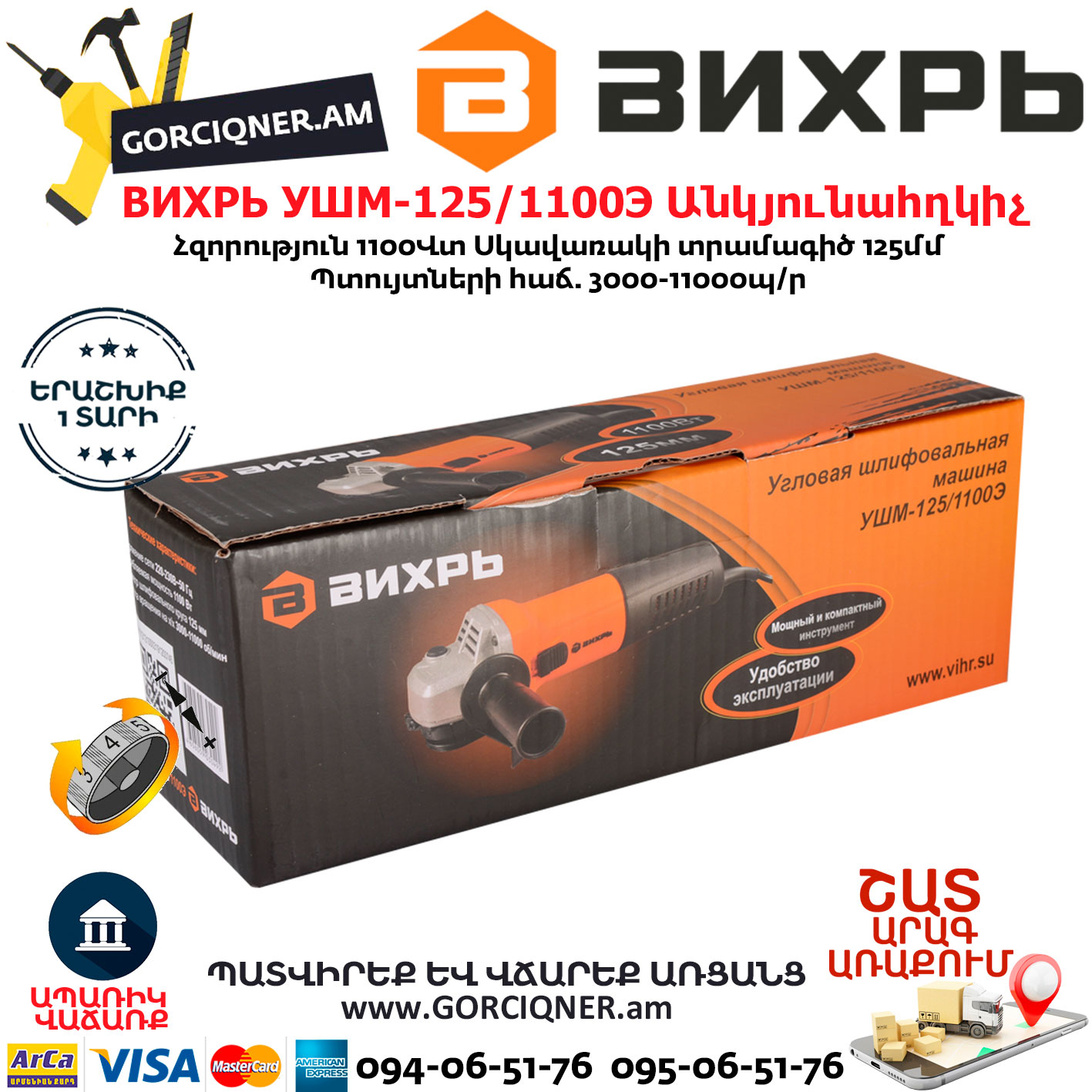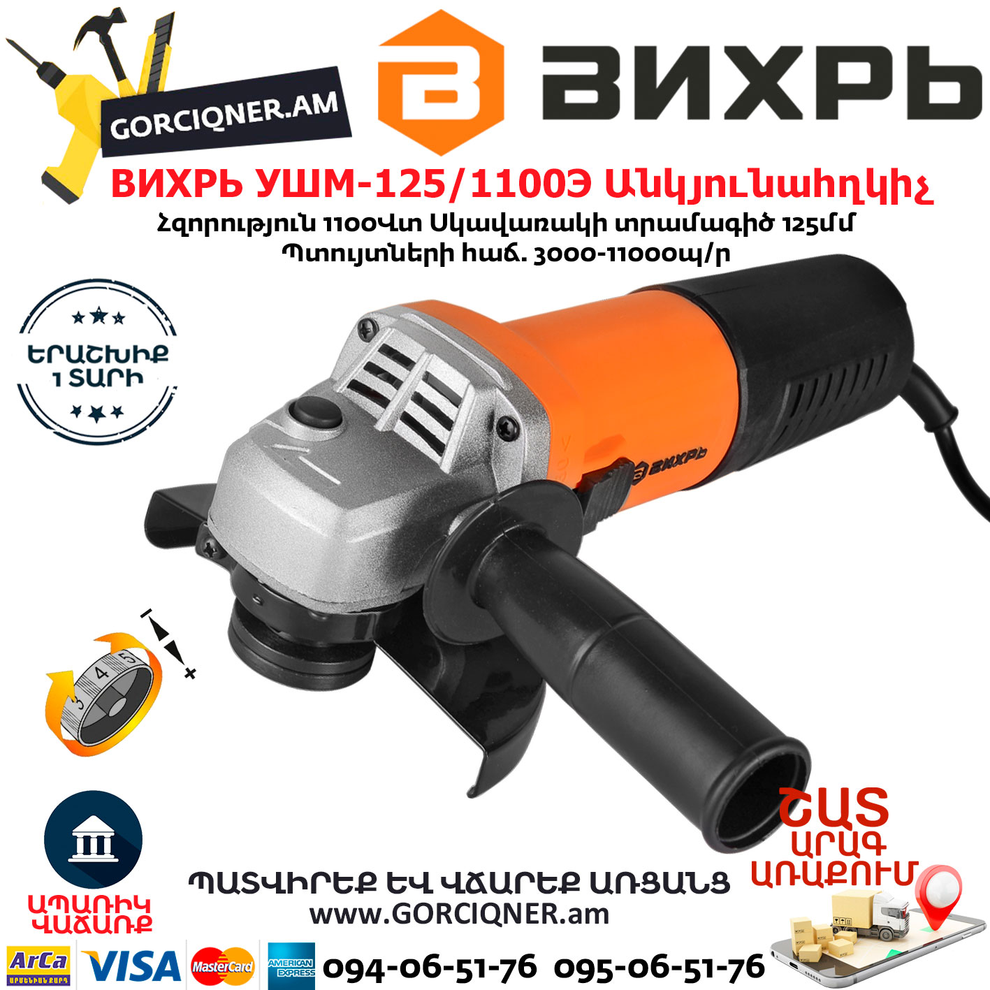 ВИХРЬ УШМ-125/1100Э Անկյունային հղկող մեքենա 125մմ/1100վտ (ԿԱՐԳԱՎՈՐԻՉ) 72/12/10