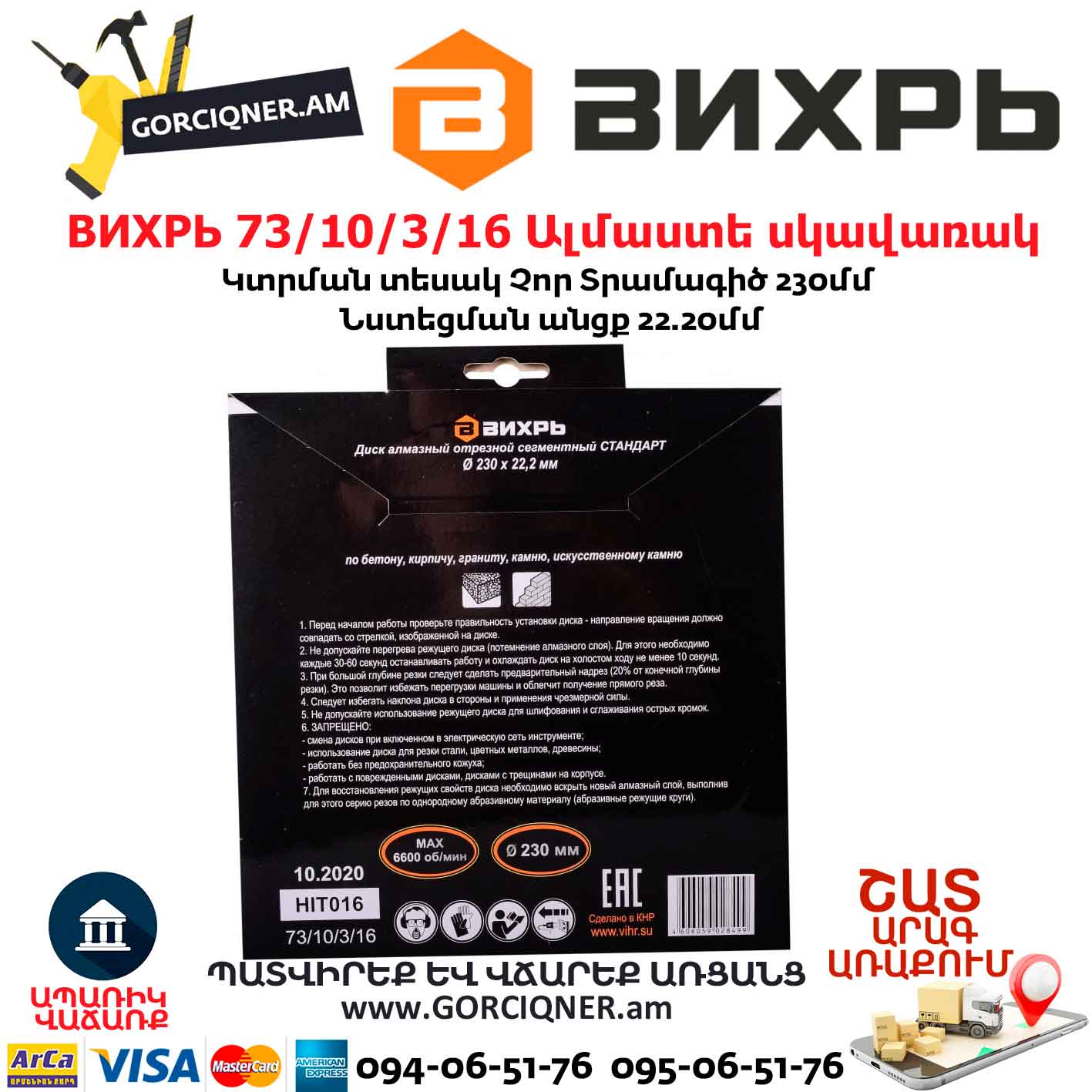 ВИХРЬ 73/10/3/16 Սեգմենտներով ալմաստե սկավառակ 230х22.2մմ (ՍՏԱՆԴԱՐՏ)
