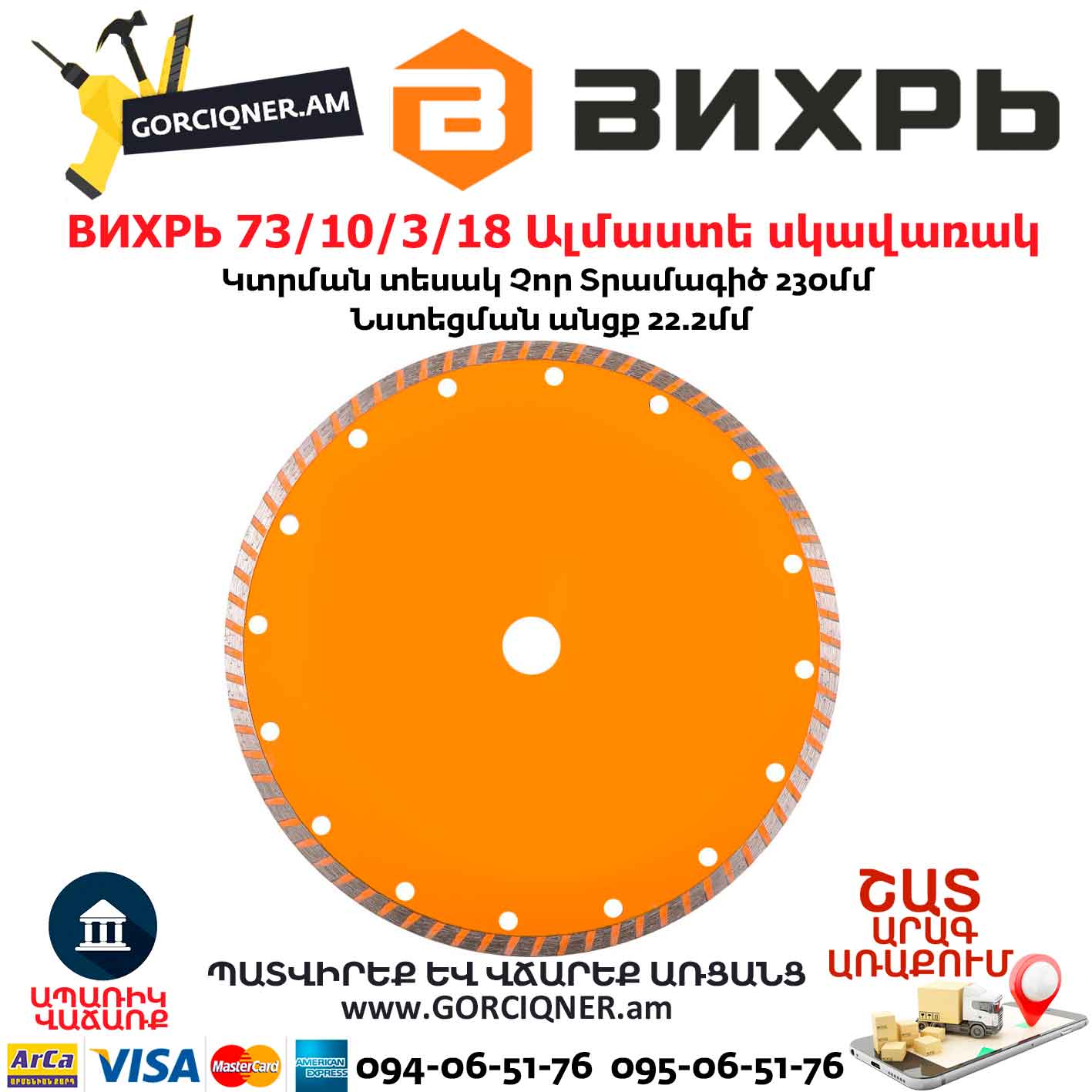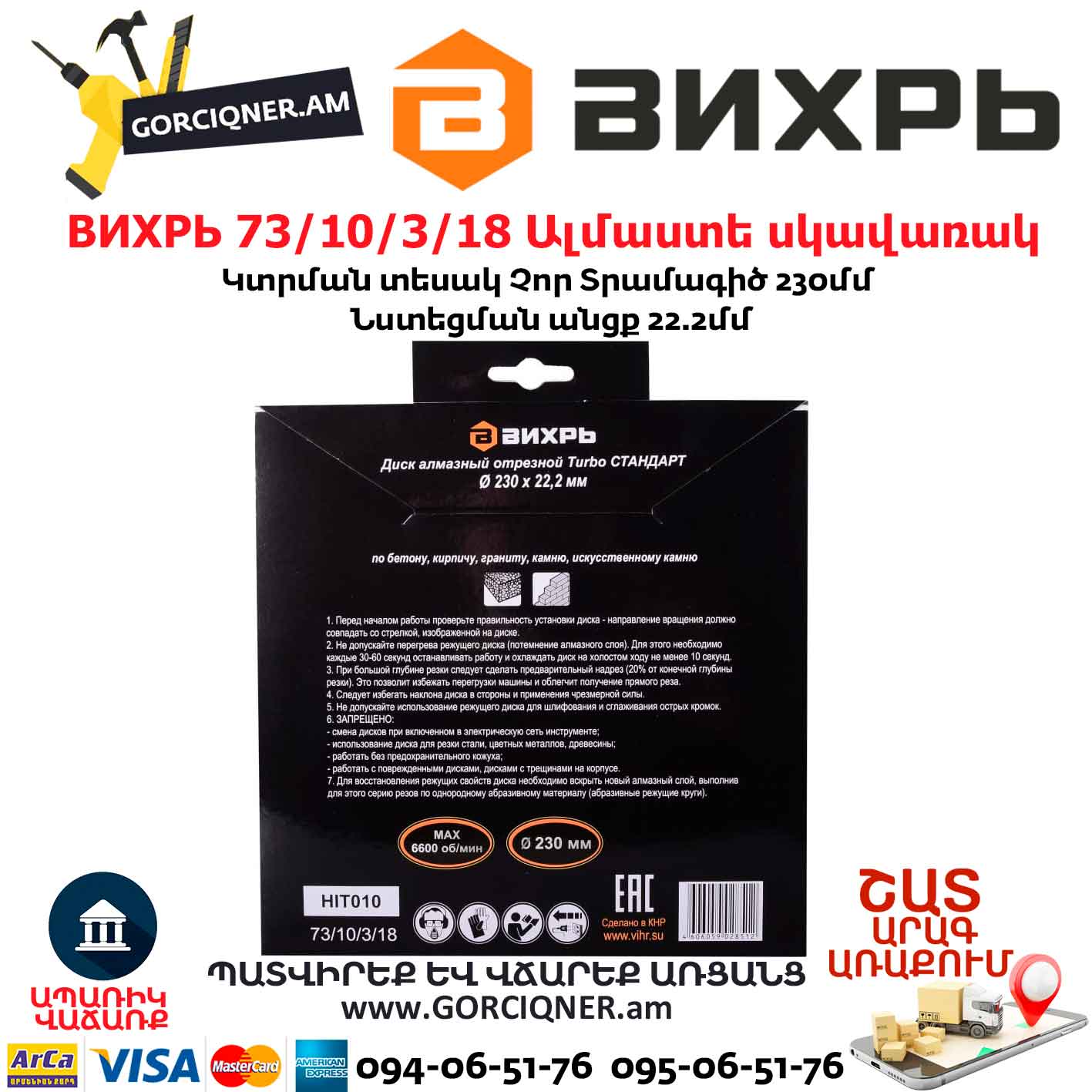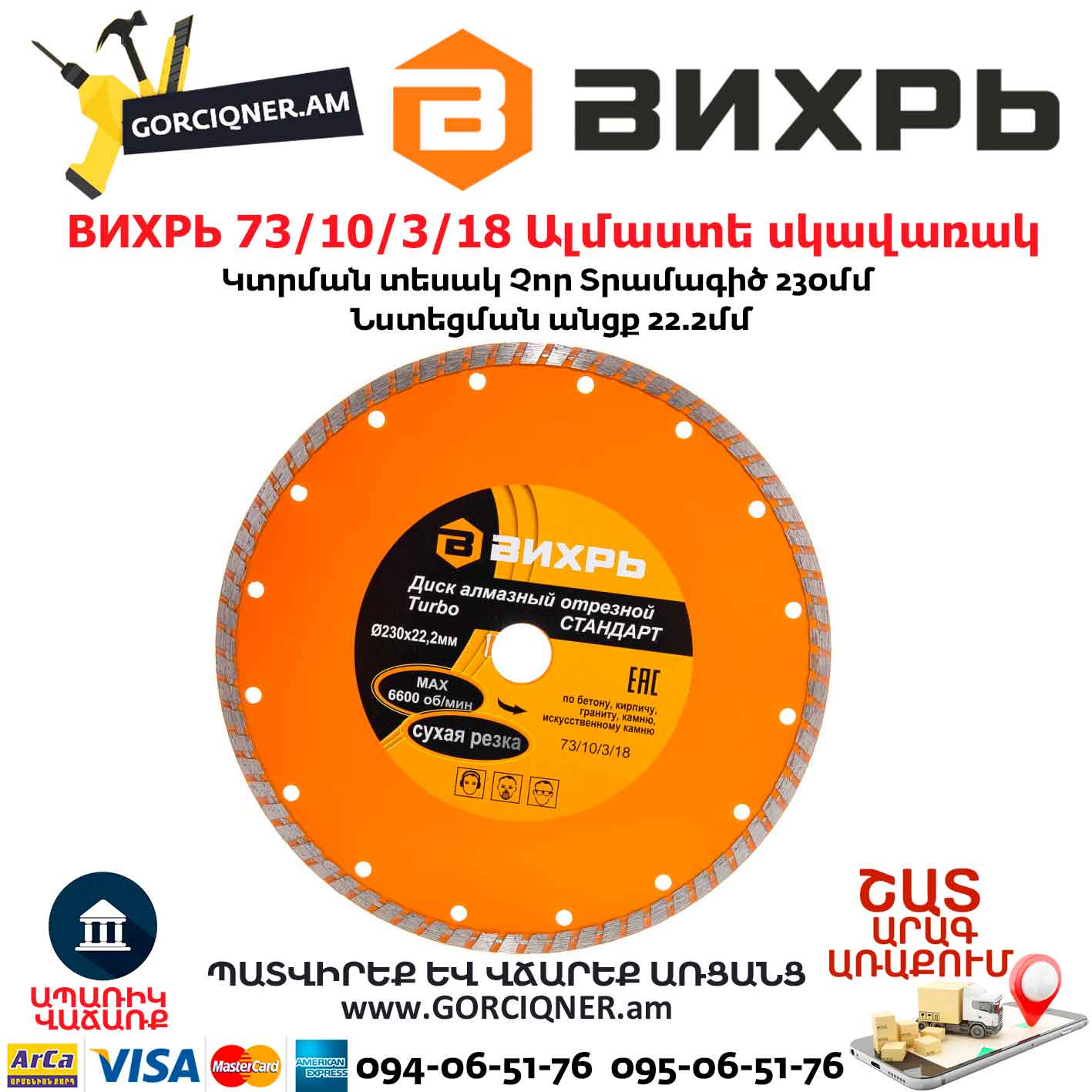 ВИХРЬ 73/10/3/18 Սեգմենտներով ալմաստե սկավառակ 230х22.2մմ (ՏՈՒՐԲՈ-ՍՏԱՆԴԱՐՏ)