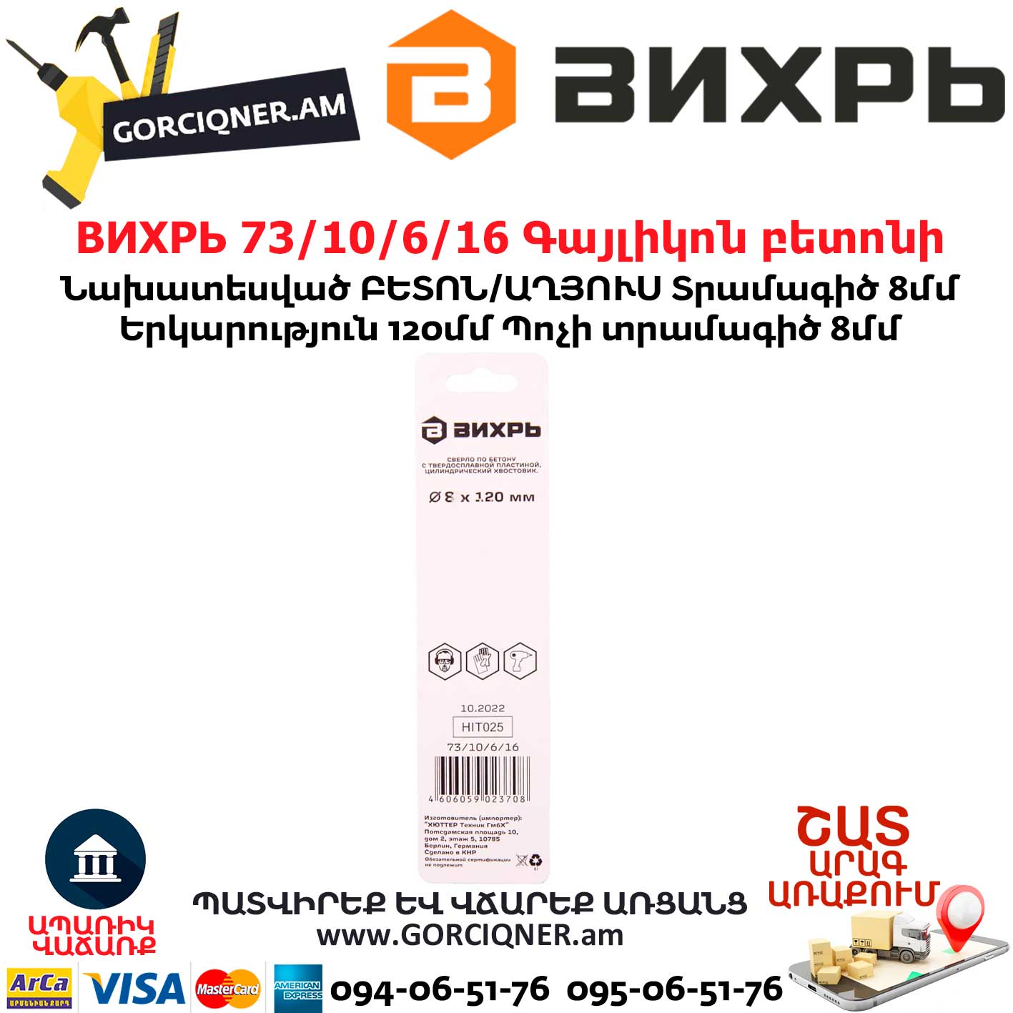 ВИХРЬ 73/10/6/16 Գայլիկոն բետոնի 8×120մմ
