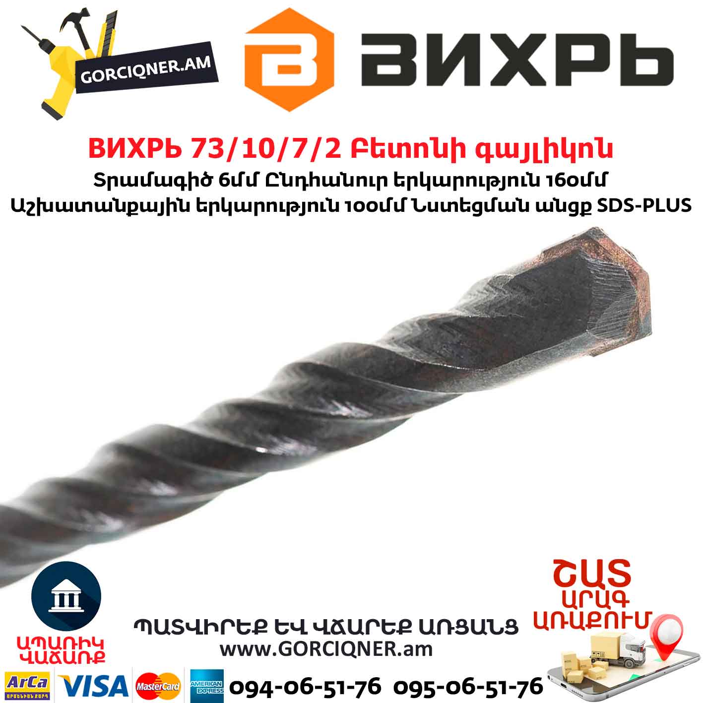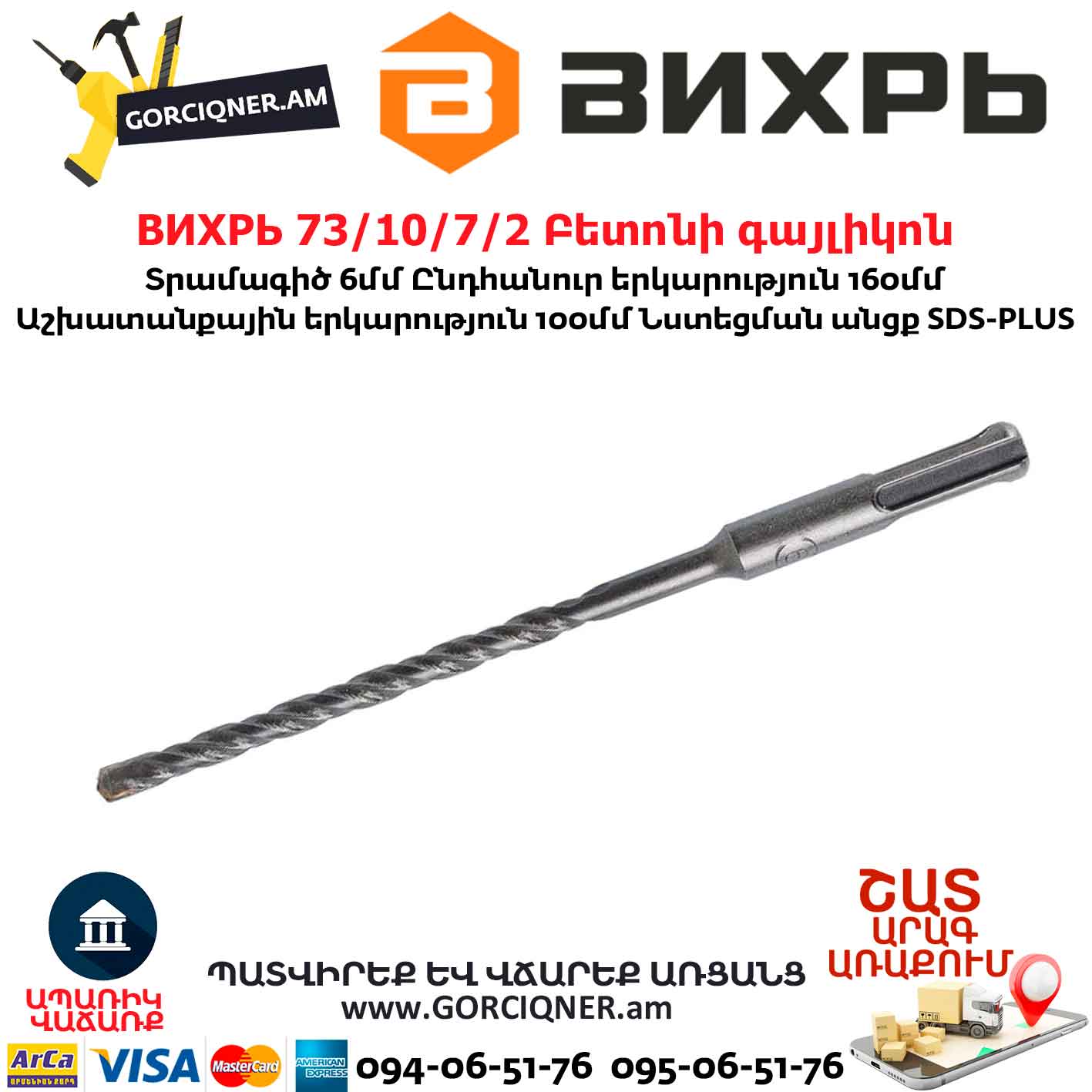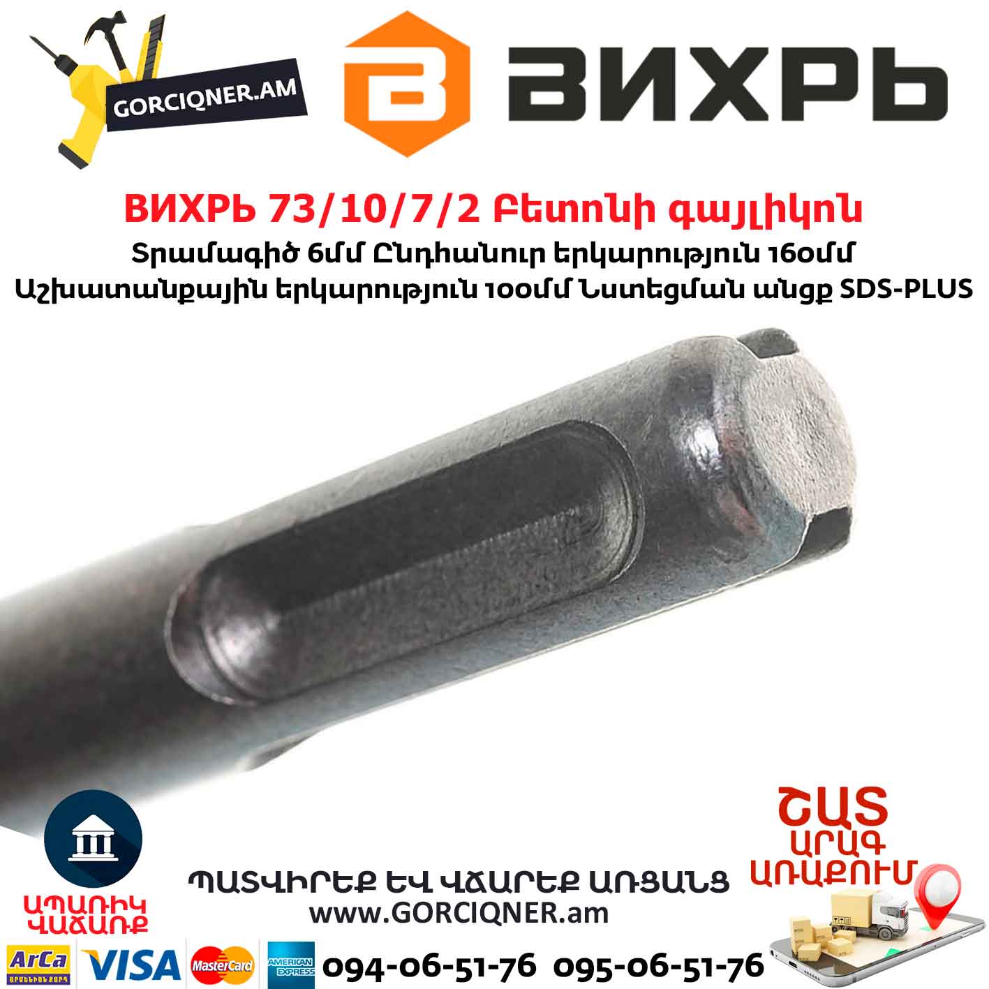 ВИХРЬ 73/10/7/2 Բետոնի գայլիկոն 6x160x100մմ SDS-Plus