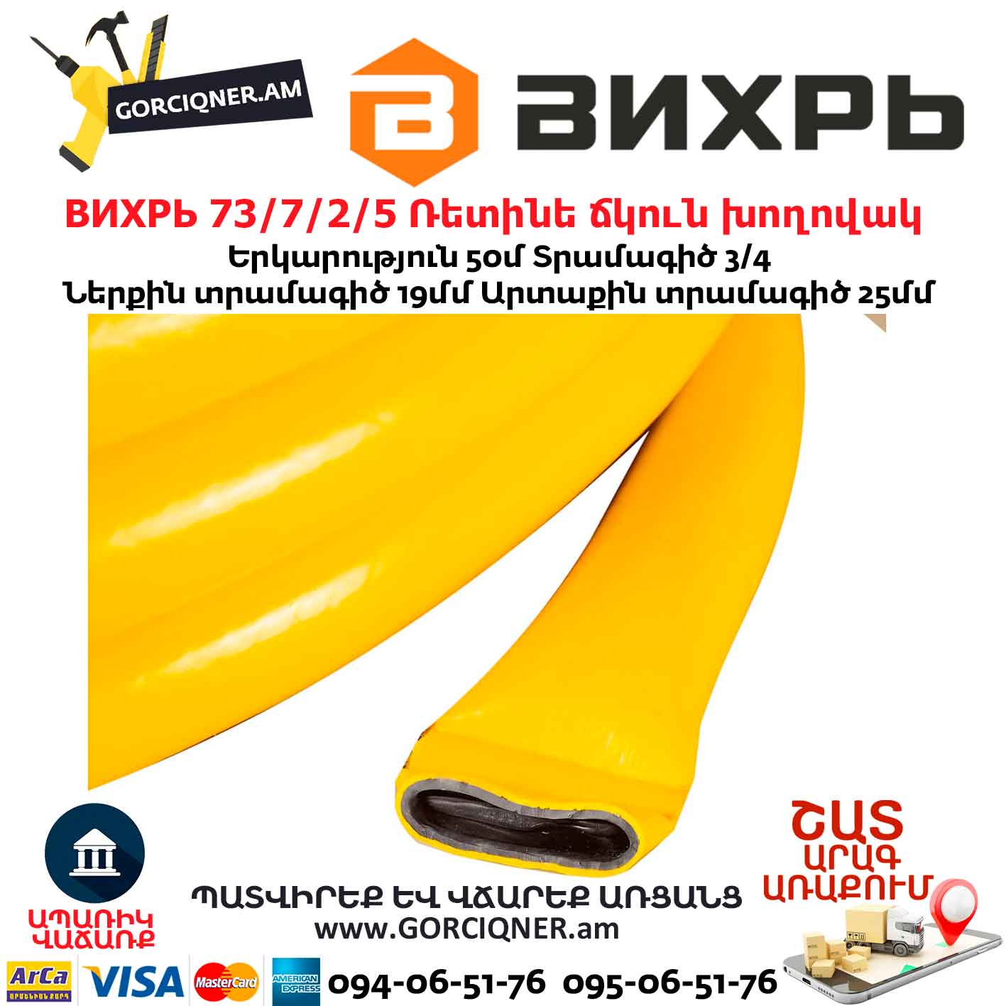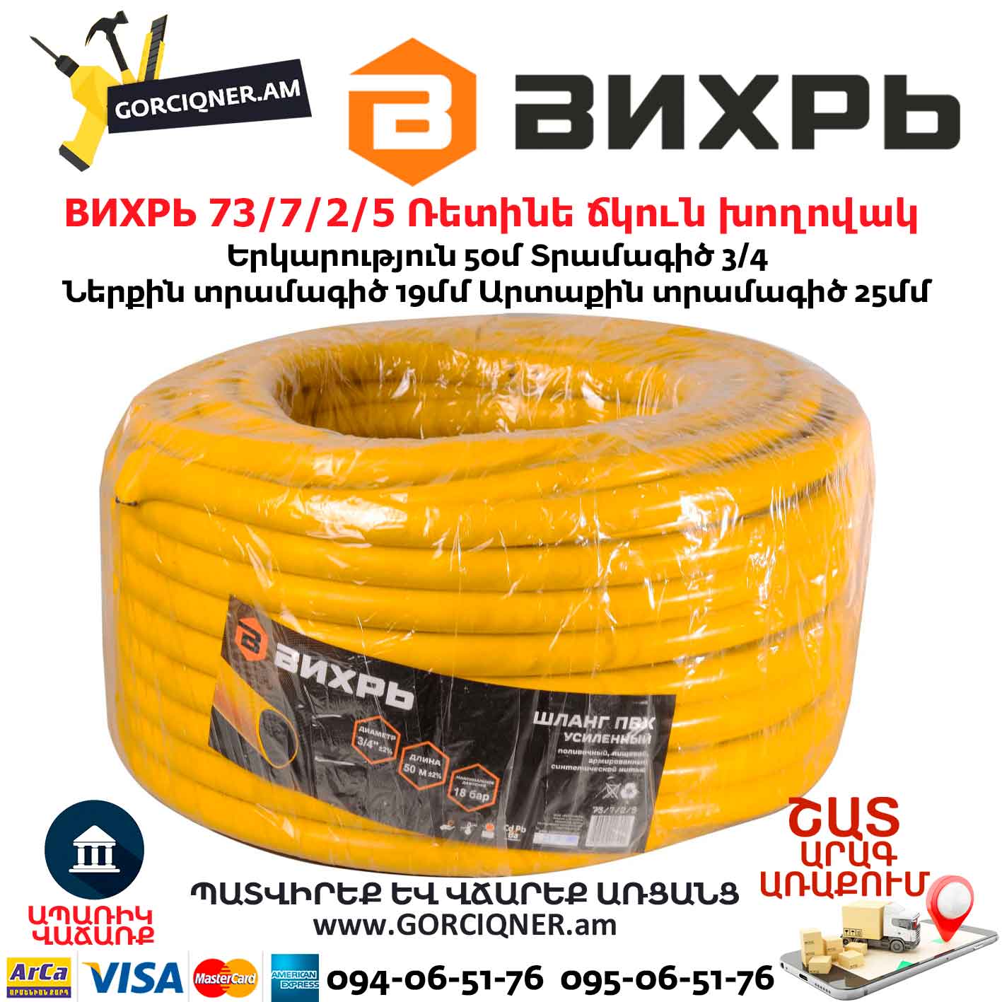 ВИХРЬ 73/7/2/5 Ռետինե ճկուն խողովակ 3/4”-50մ ПВХ (ՍՆՆԴԱՅԻՆ, ԵՌԱՇԵՐՏ)