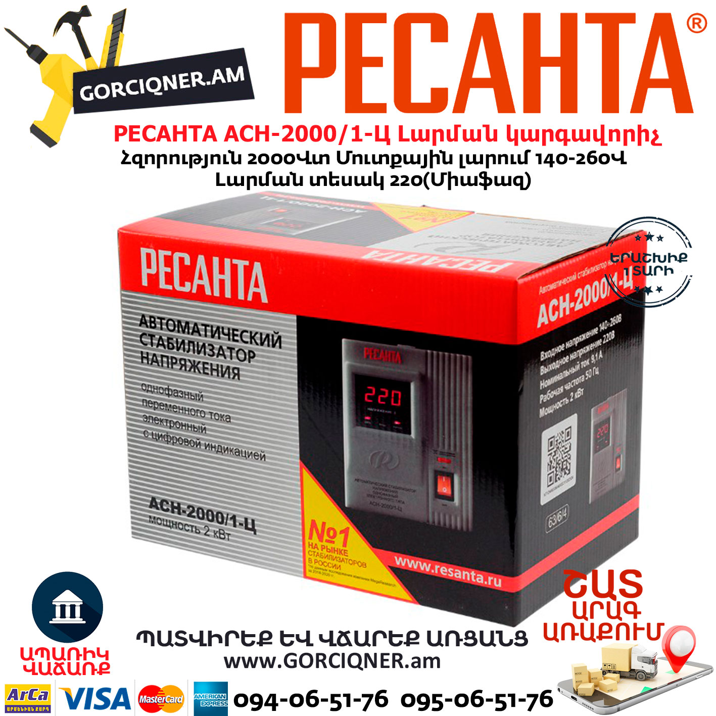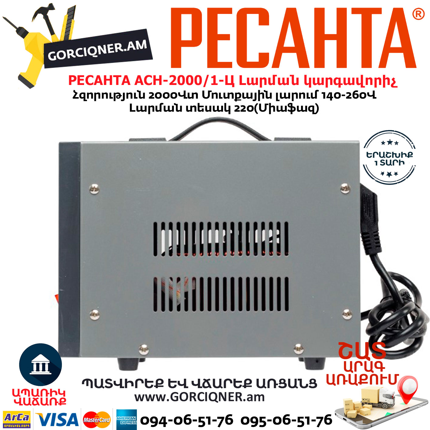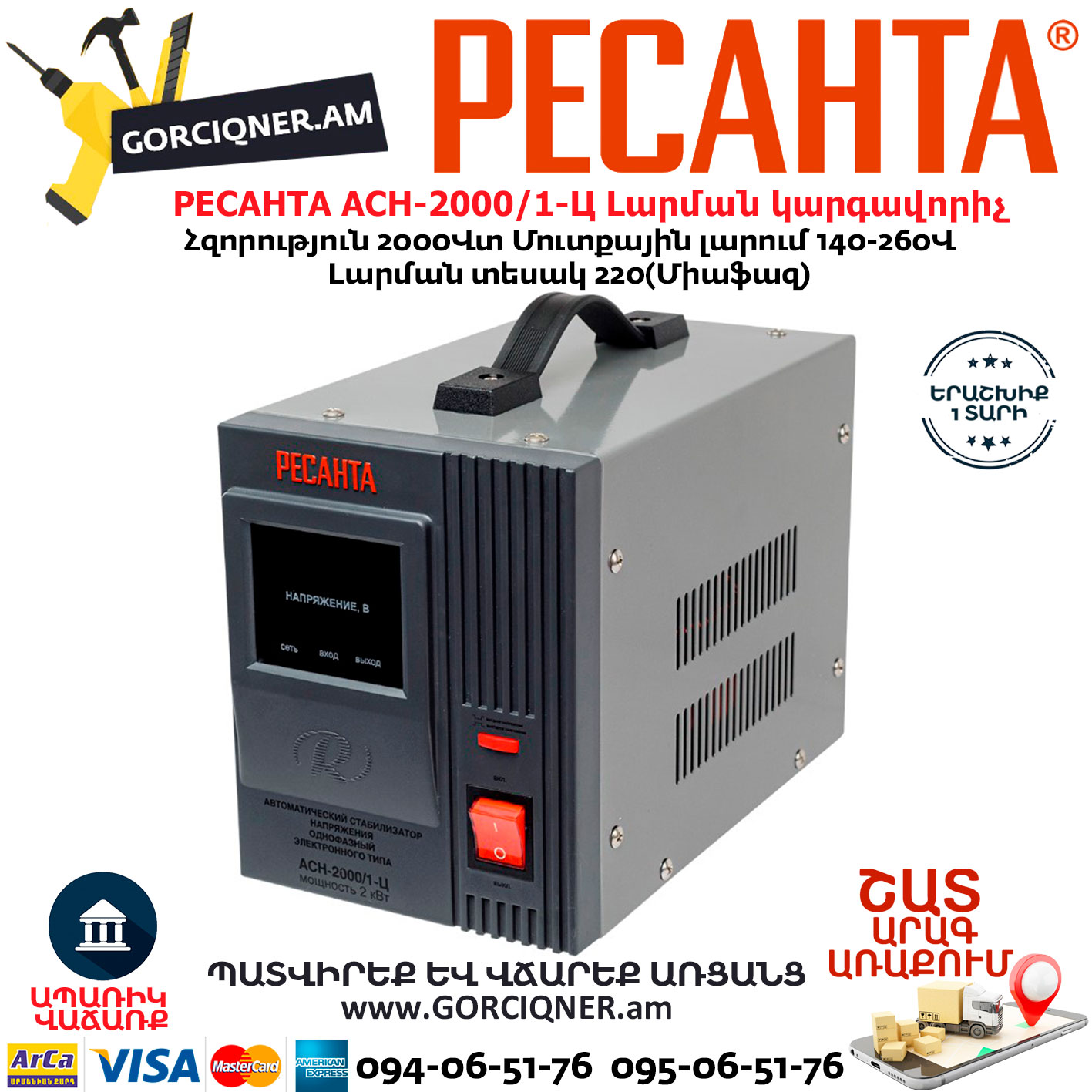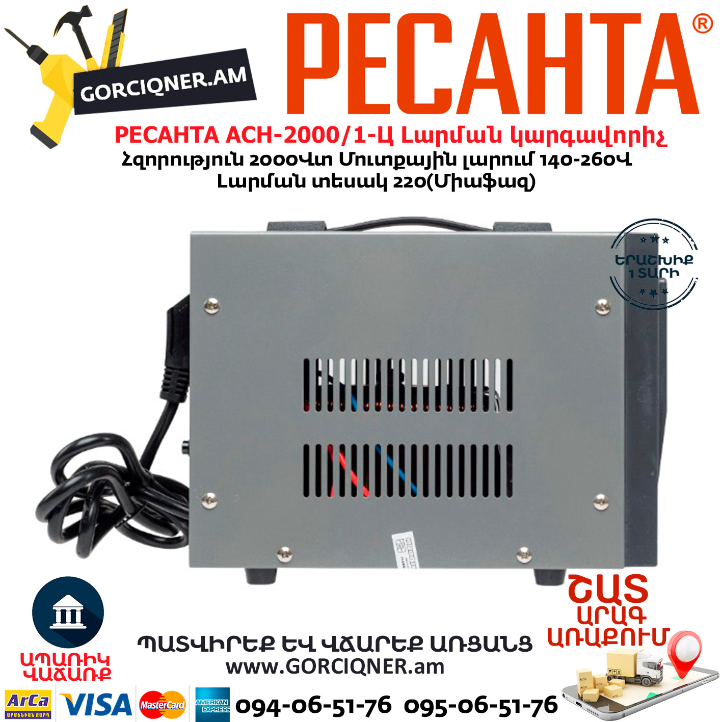 РЕСАНТА АСН-2000/1-Ц Հոսանքի լարման կարգավորիչ