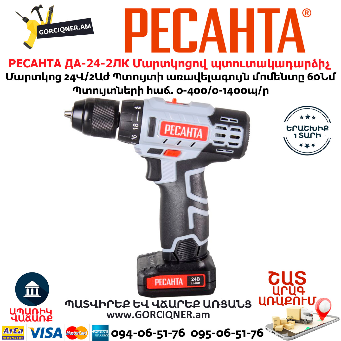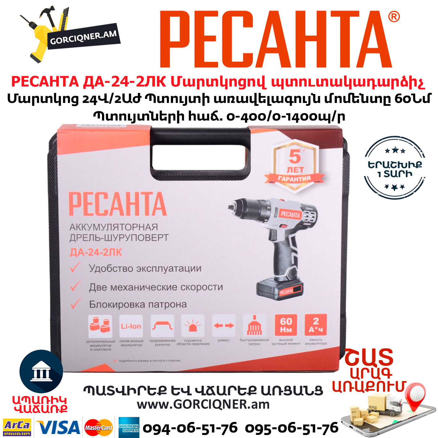 РЕСАНТА ДА-24-2ЛК Մարտկոցով պտուտակադարձիչ