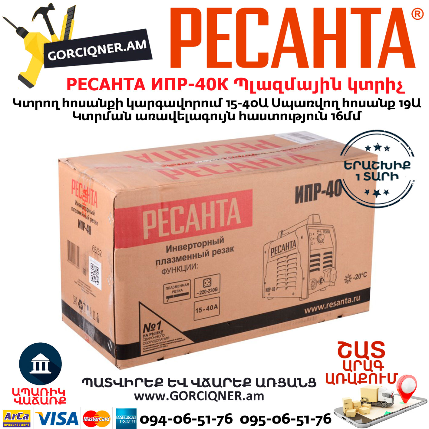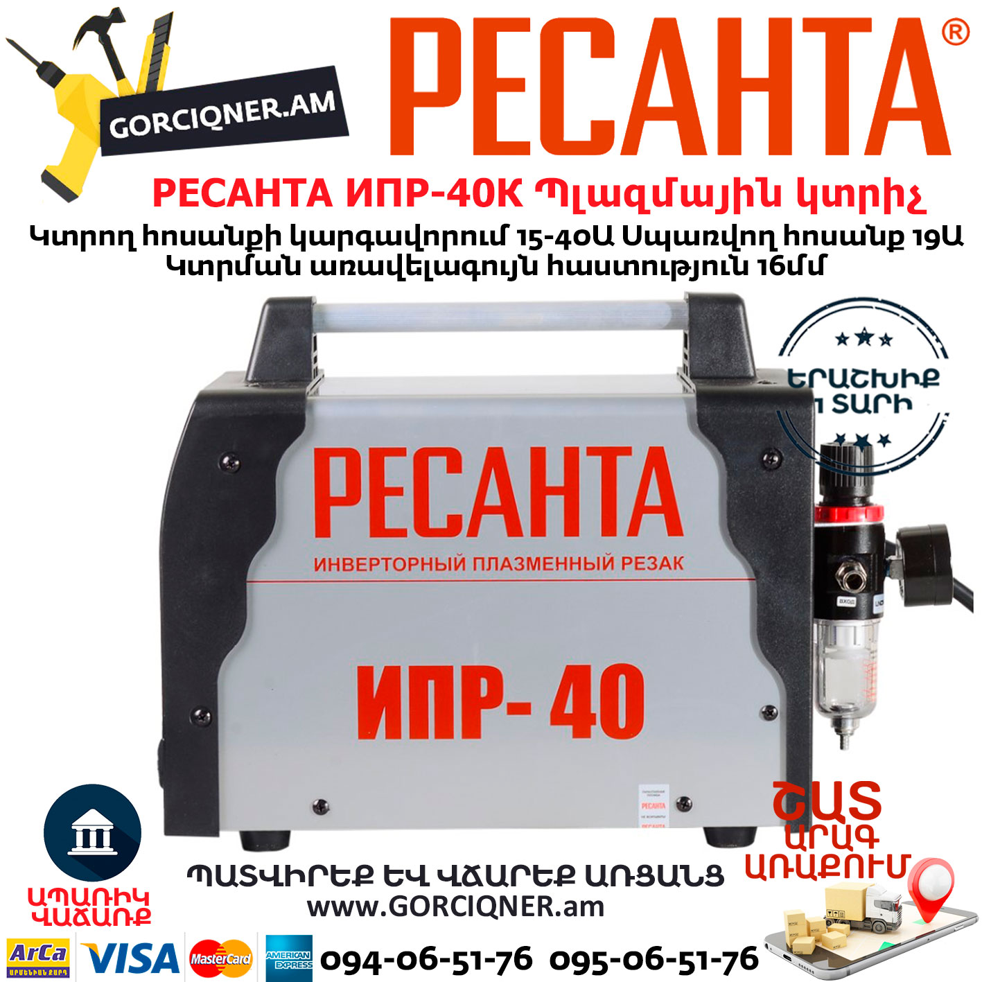 РЕСАНТА ИПР-40 Ինվերտորային պլազմային կտրիչ 15-40Ա 65/32