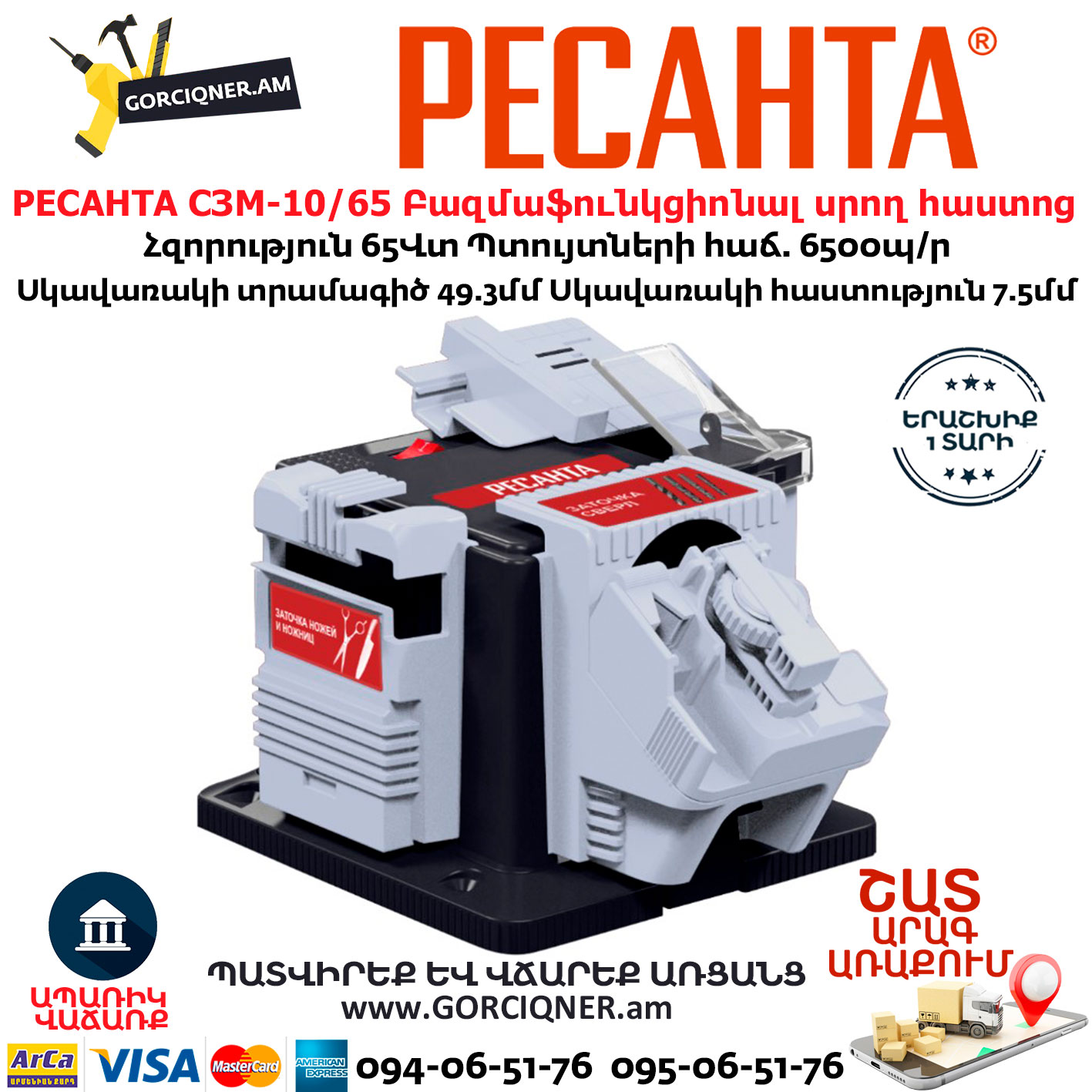РЕСАНТА СЗМ-10/65 Բազմաֆունկցիոնալ սրող հաստոց տաչիլո 65Վտ 75/10/3