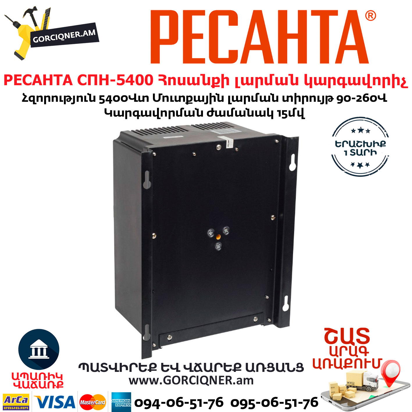 РЕСАНТА СПН-5400 Հոսանքի լարման կարգավորիչ