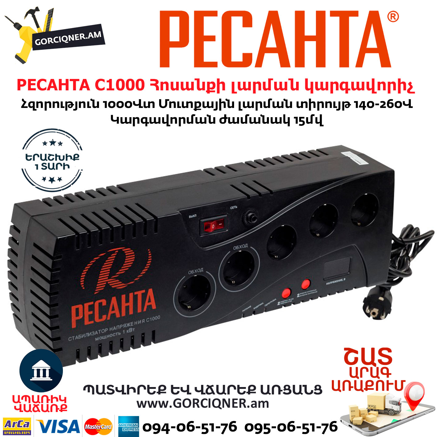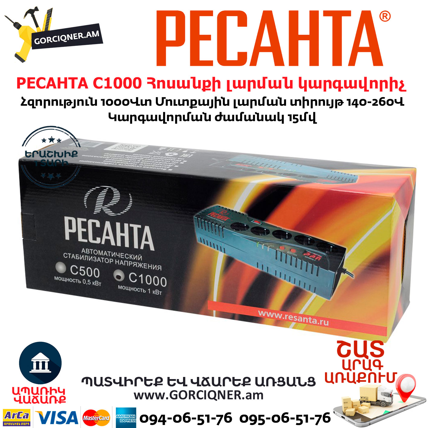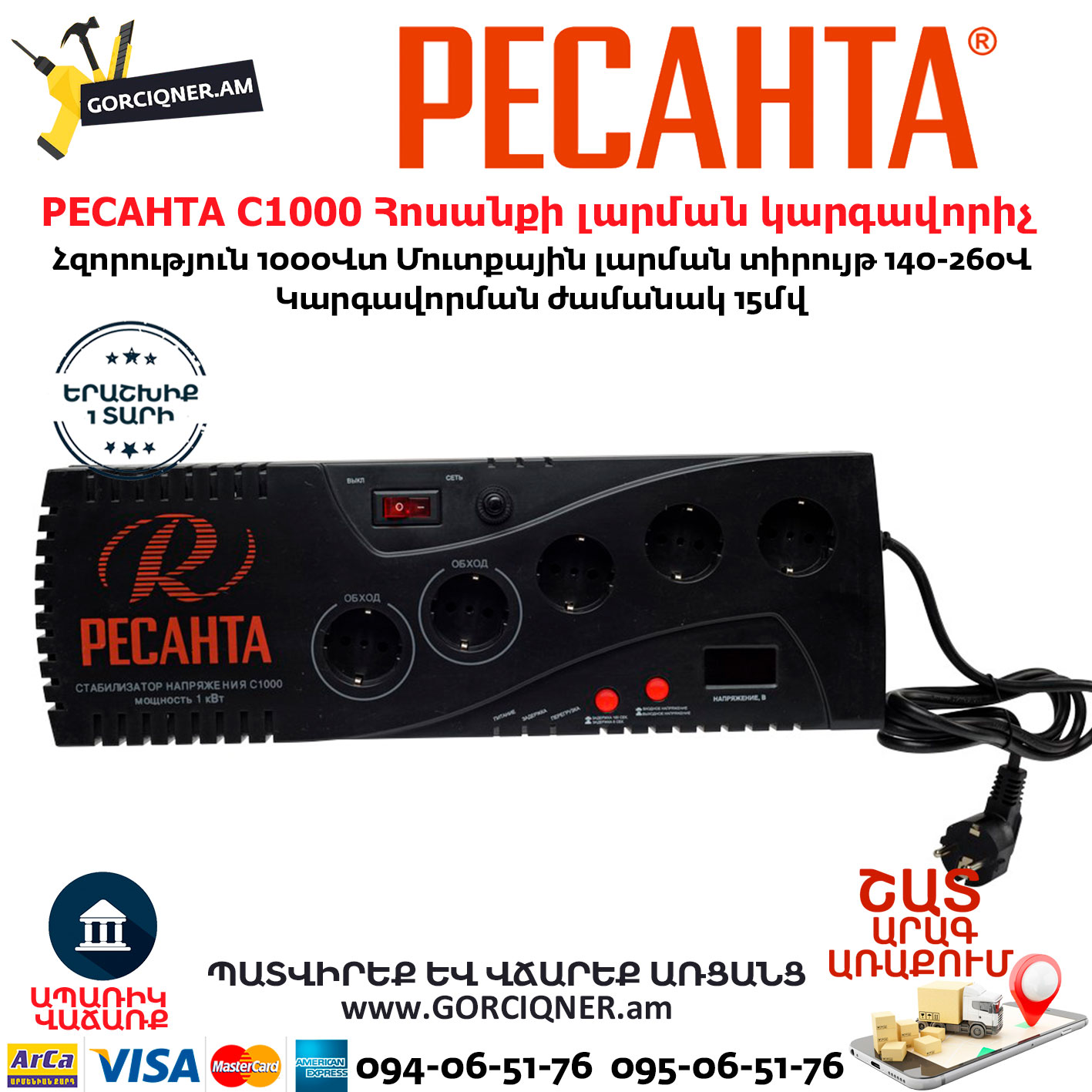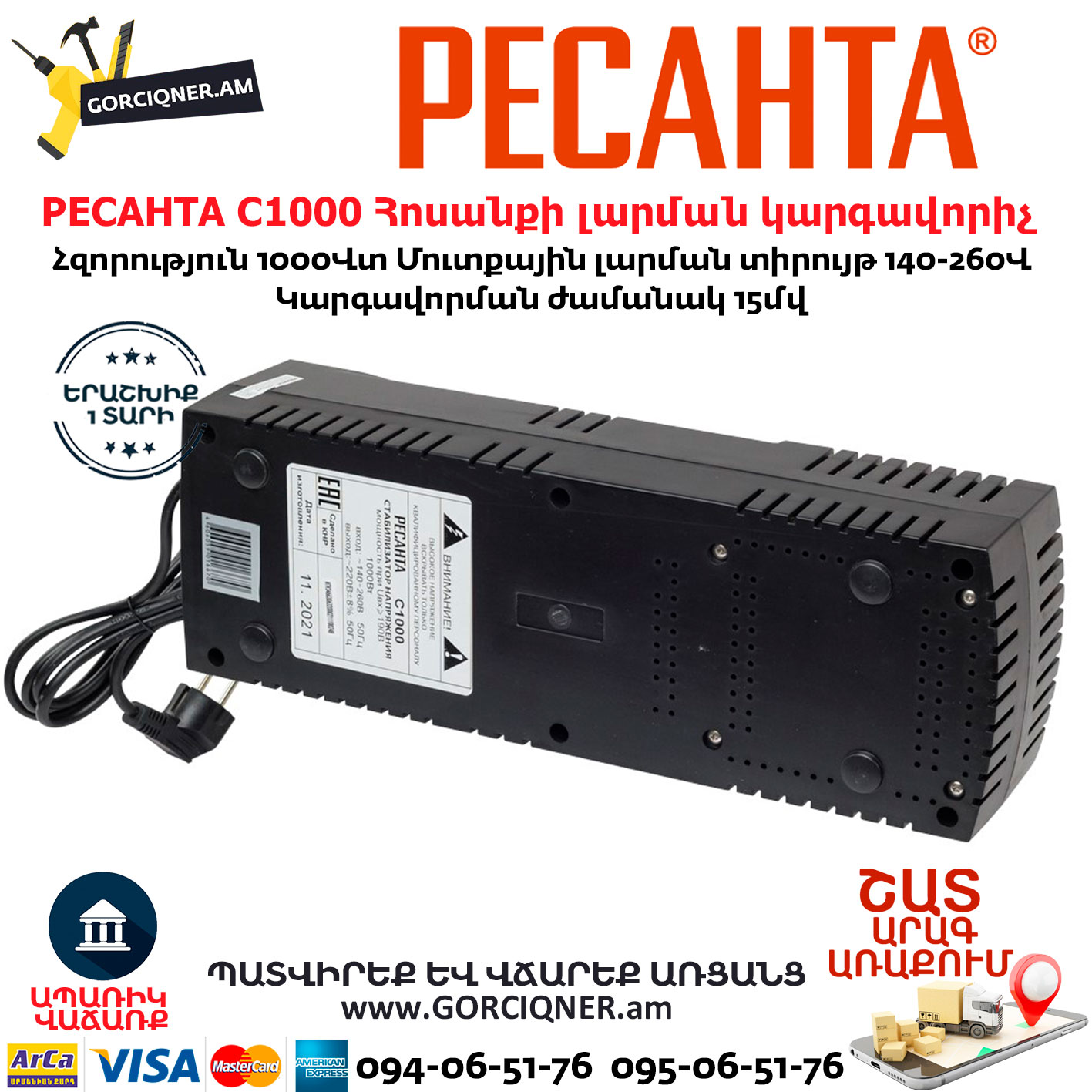 РЕСАНТА С1000 Հոսանքի լարման կարգավորիչ