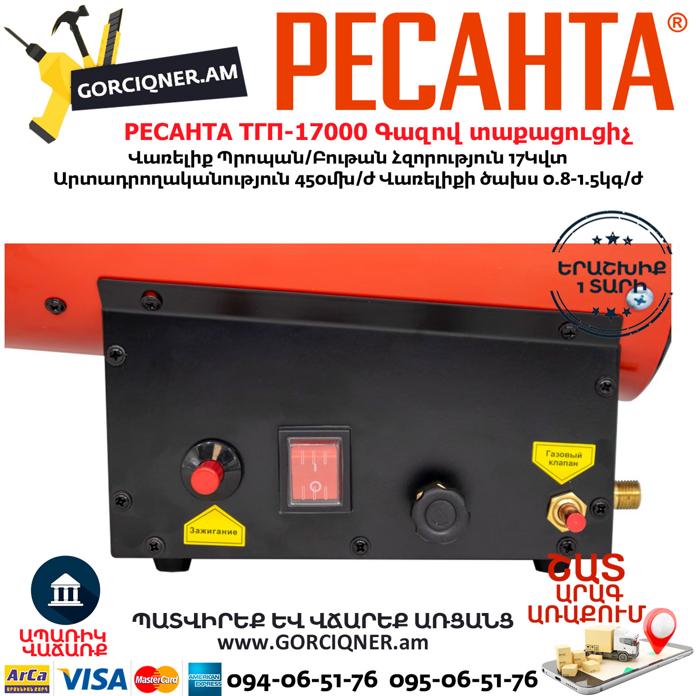 РЕСАНТА ТГП-17000 Գազով տաքացուցիչ