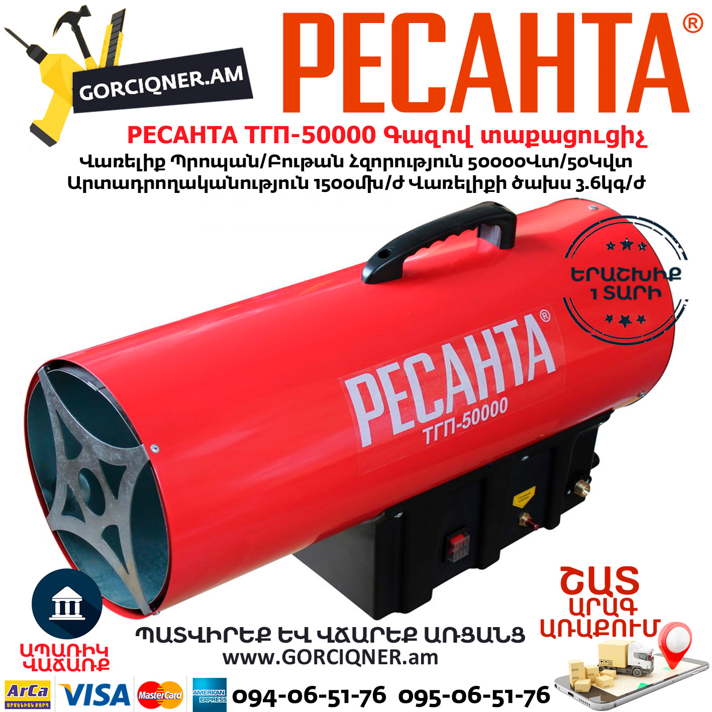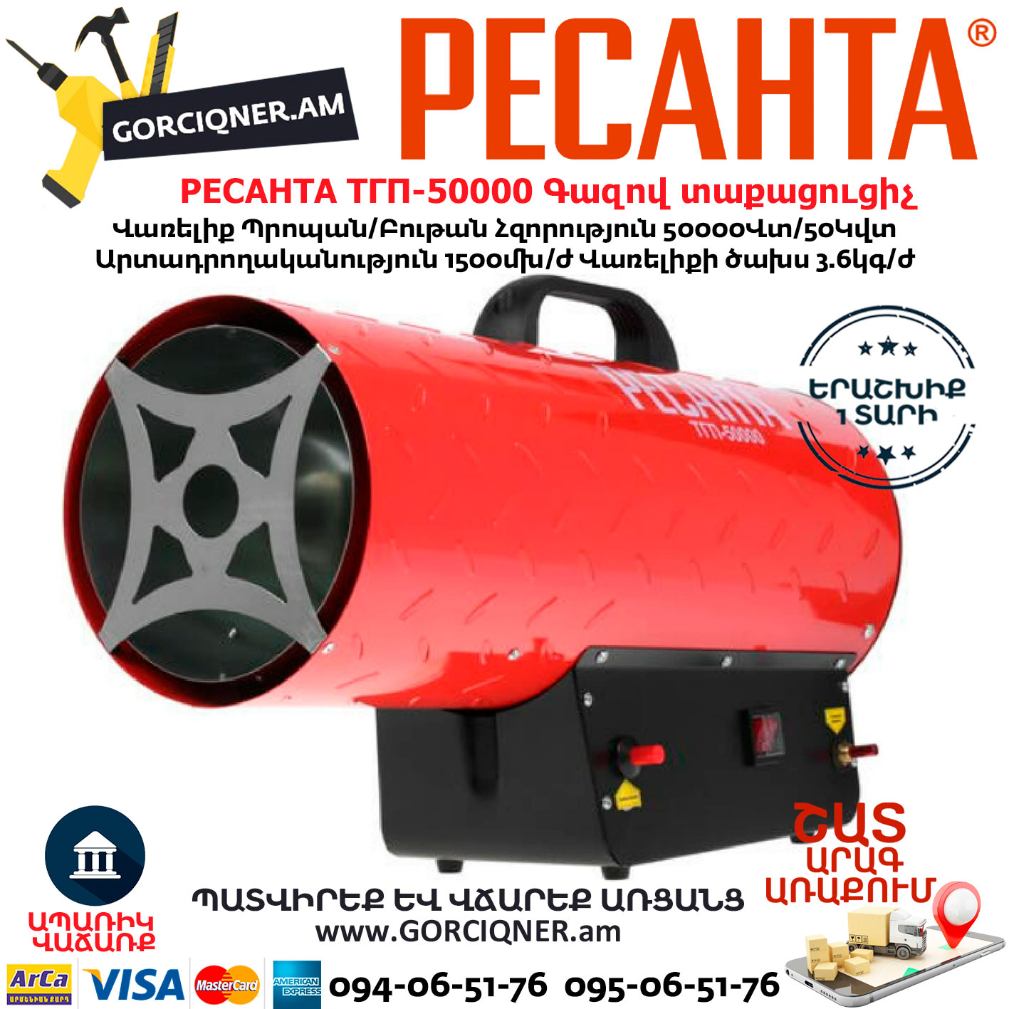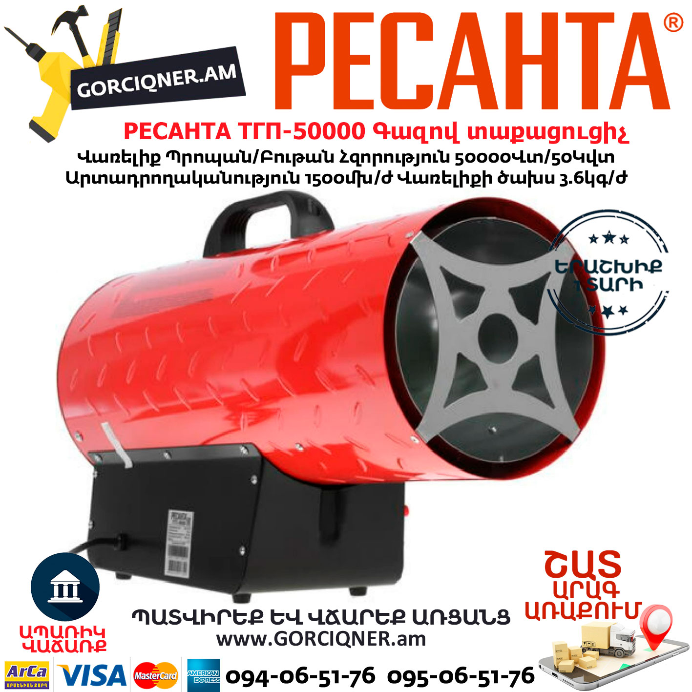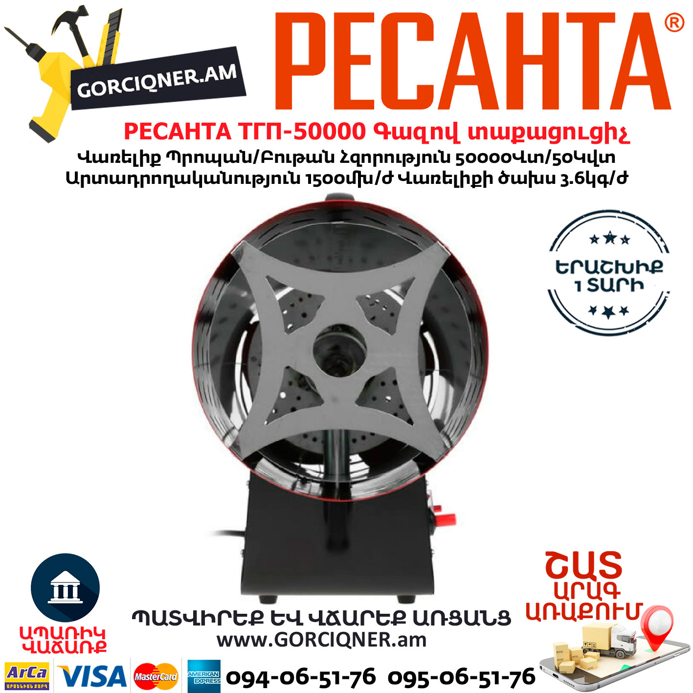 РЕСАНТА ТГП-50000 Գազով տաքացուցիչ