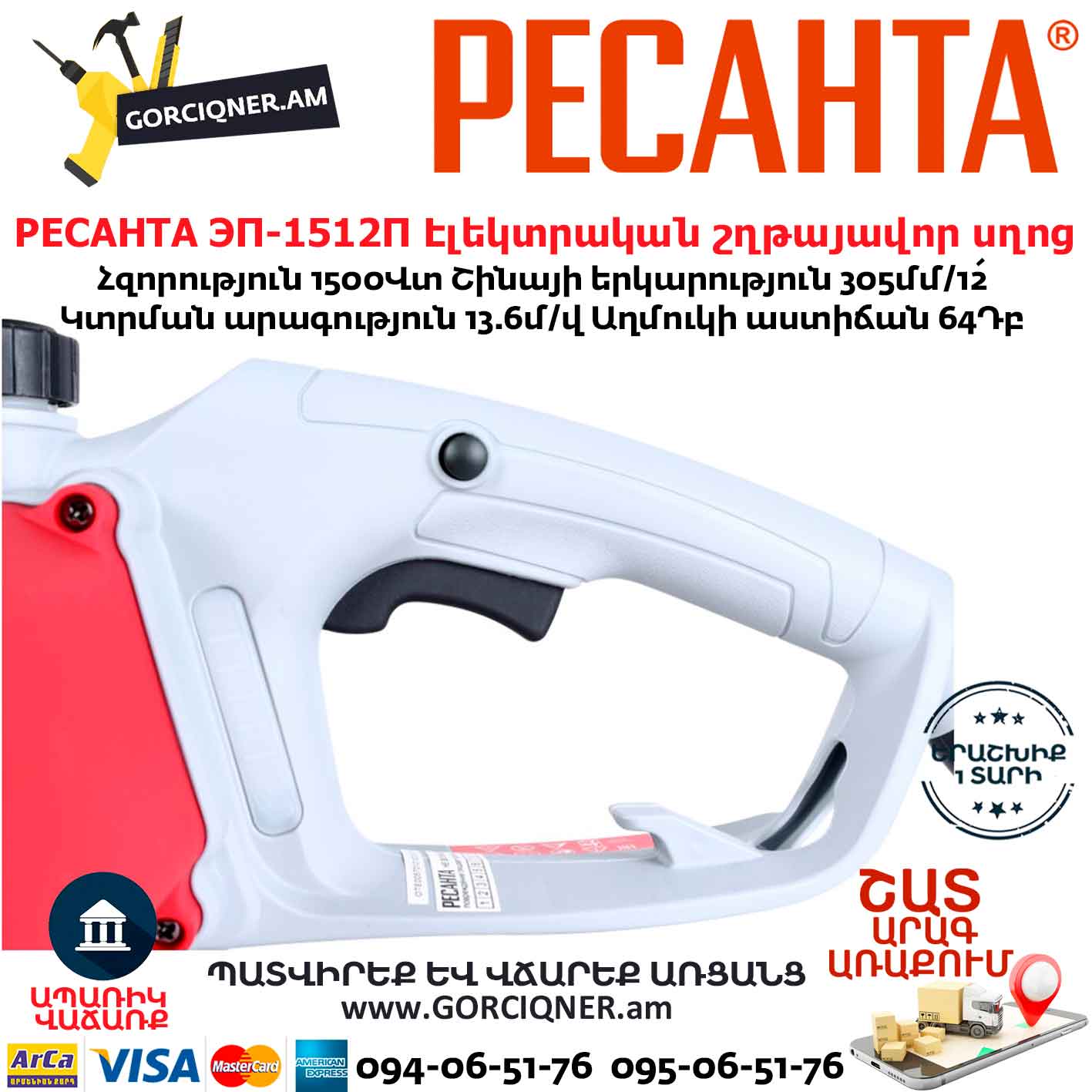 РЕСАНТА ЭП-1512П Էլեկտրական շղթայավոր սղոց