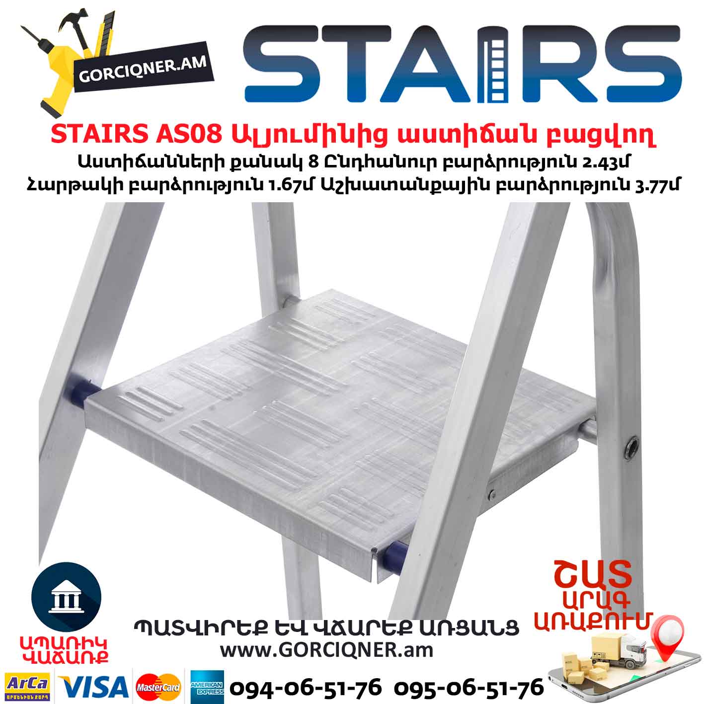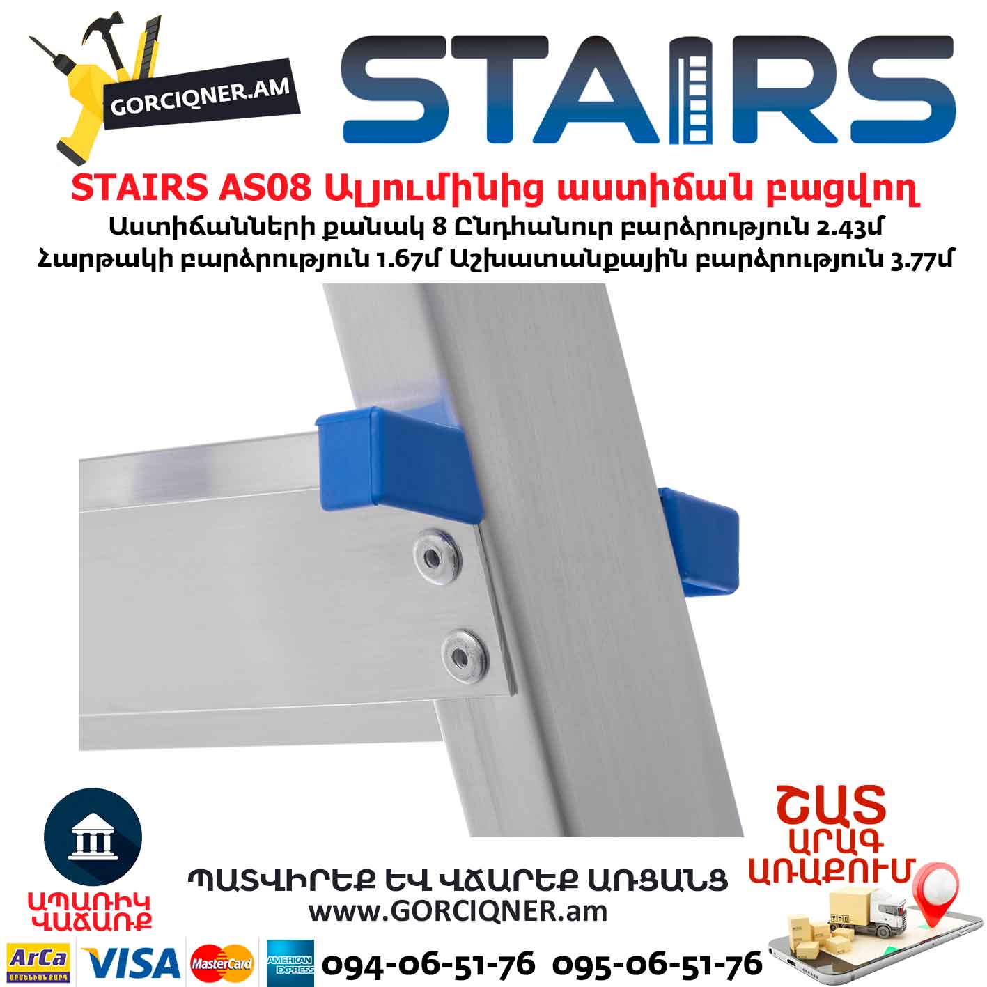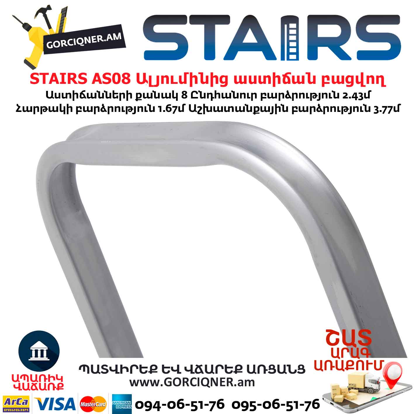 Ալյումինից աստիճան բացվող STAIRS AS08 8ոտք