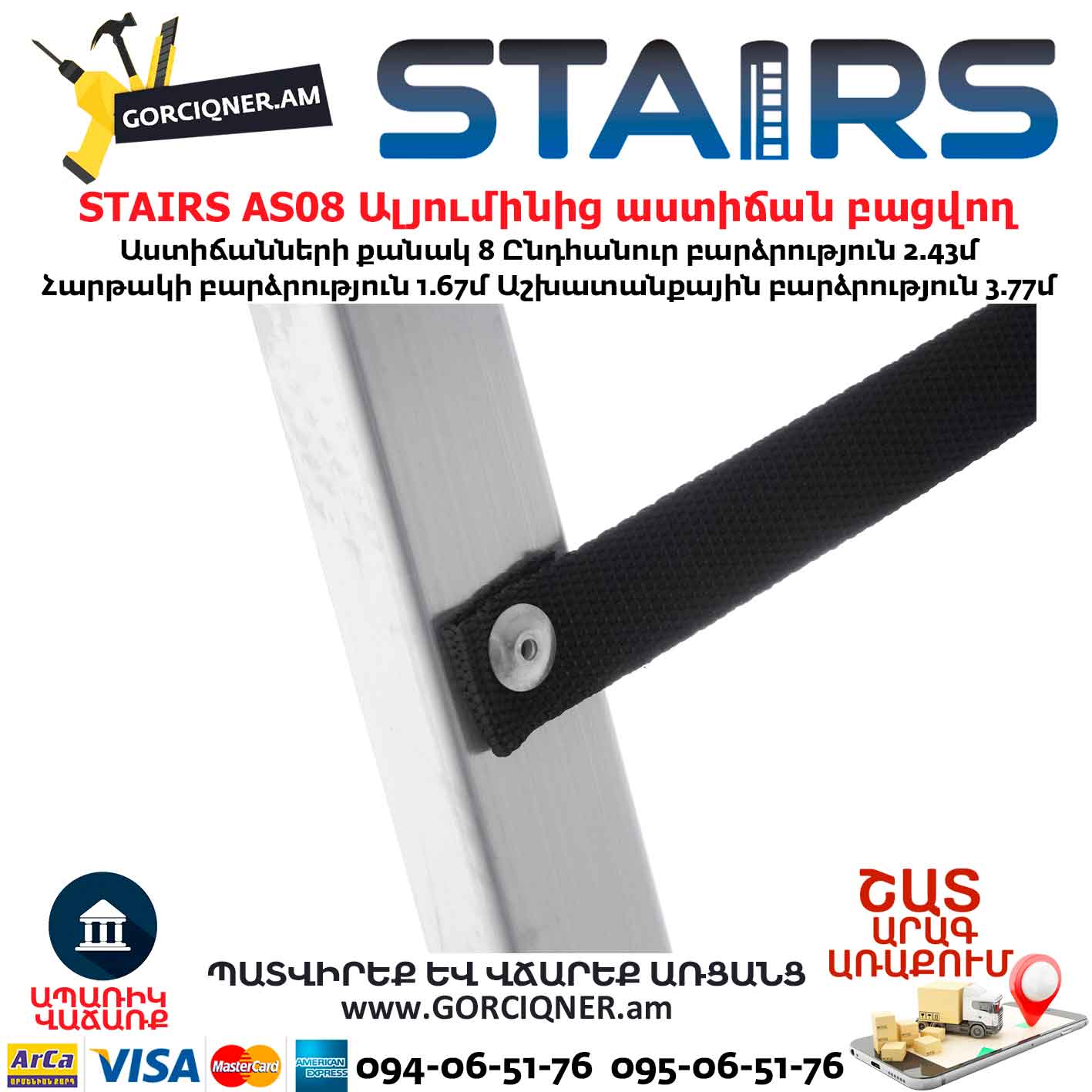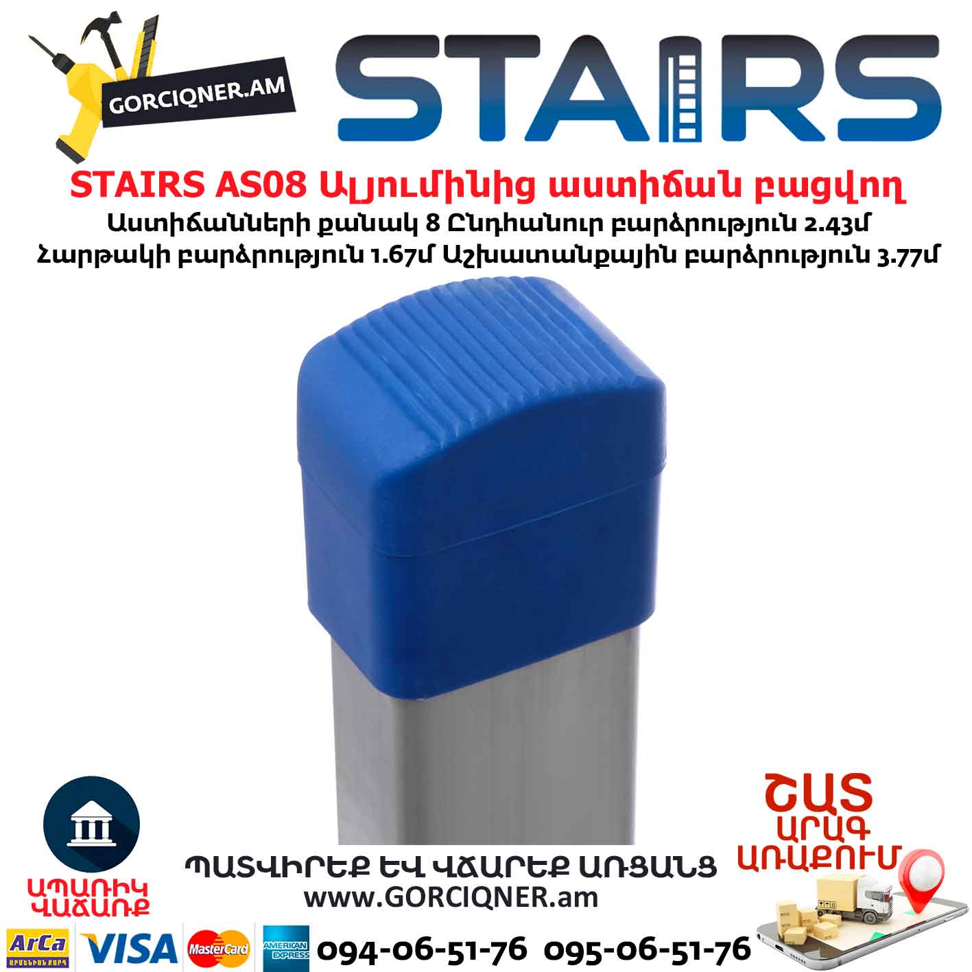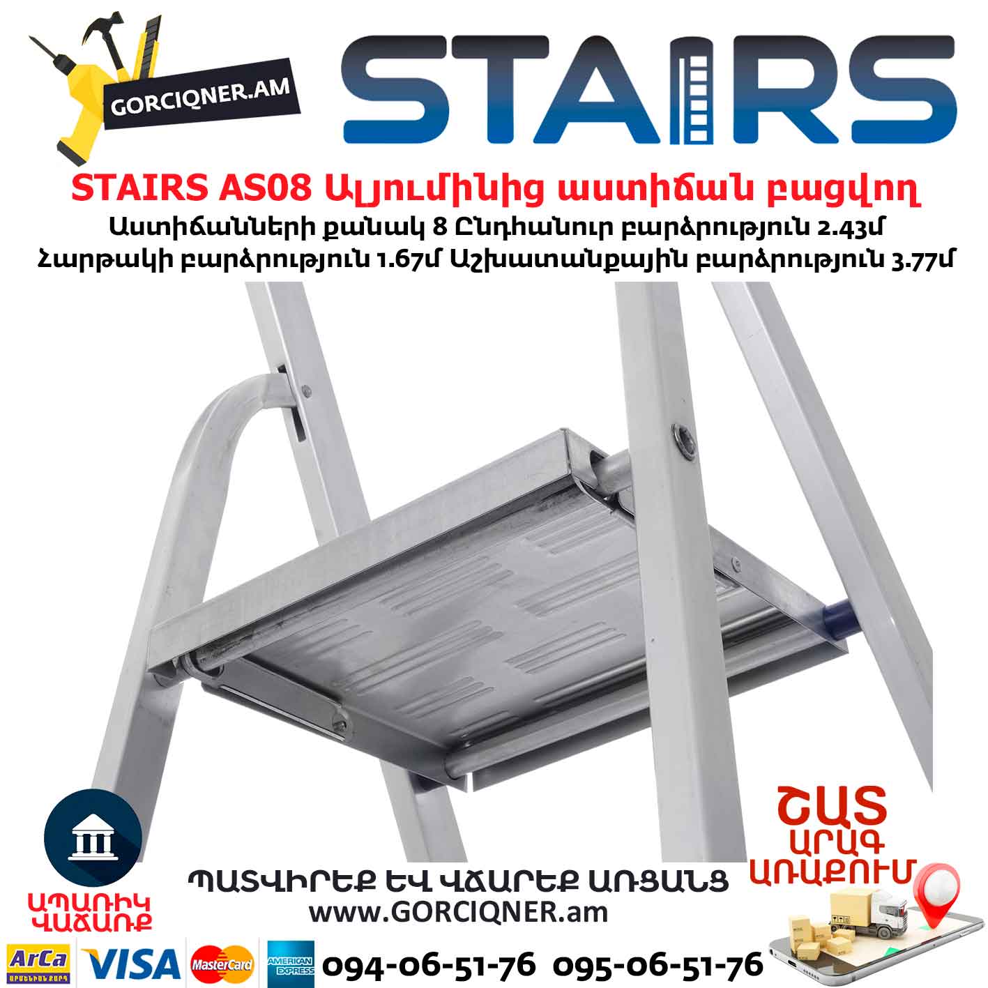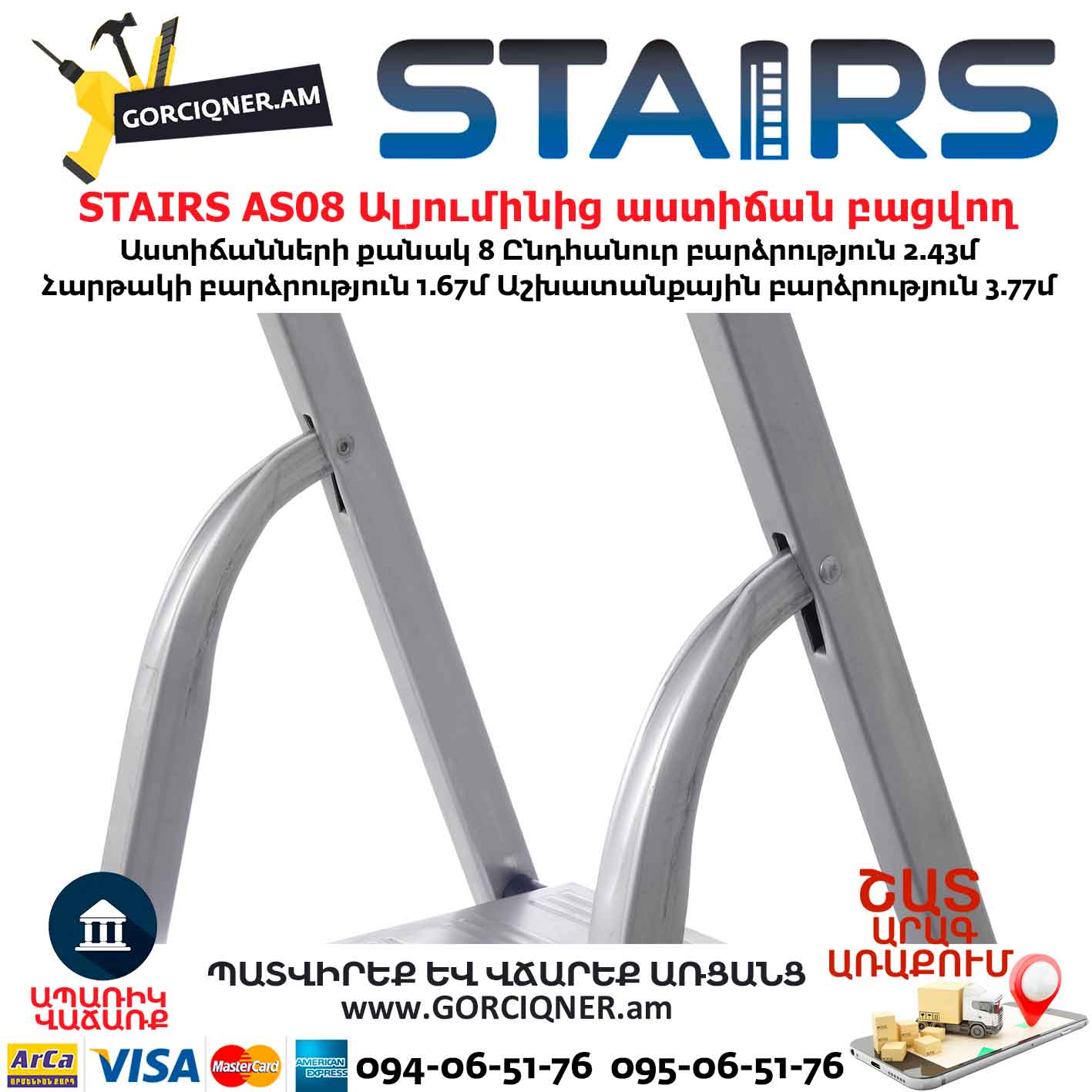 Ալյումինից աստիճան բացվող STAIRS AS08 8ոտք