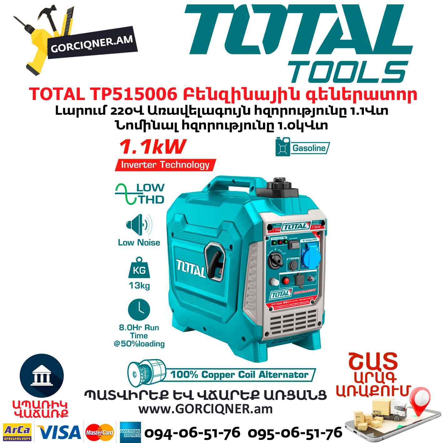 Բենզինային գեներատոր ինվերտորային TOTAL TP515006
