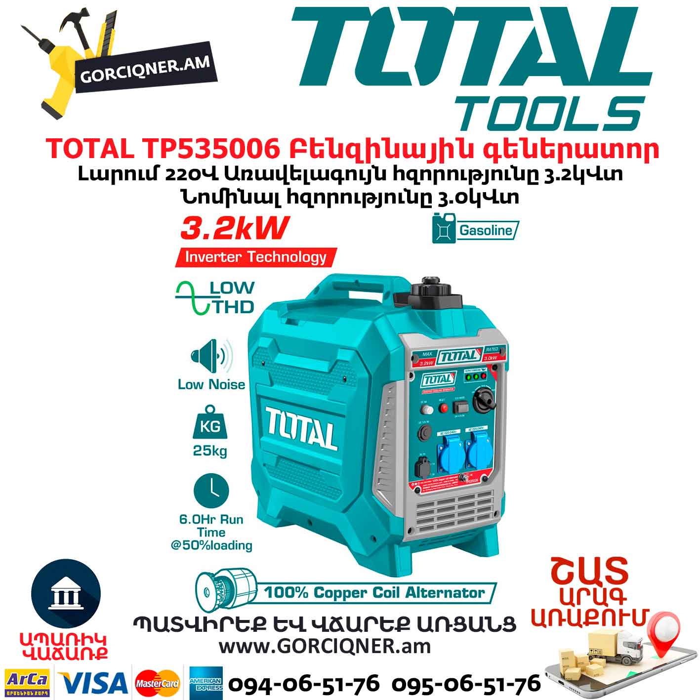 Բենզինային գեներատոր ինվերտորային TOTAL TP535006