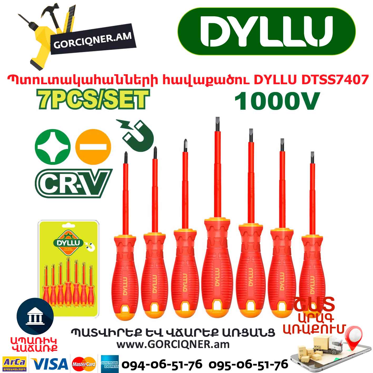 Դիէլեկտրիկ պտուտակահանների (7 հատ) հավաքածու DYLLU DTSS7407 75-150մմ