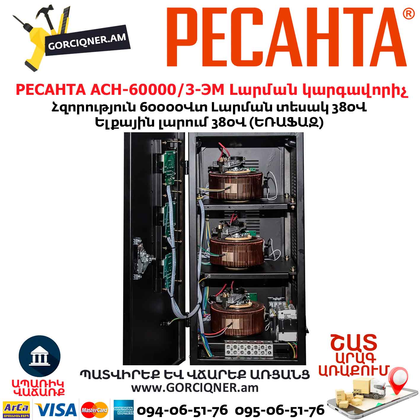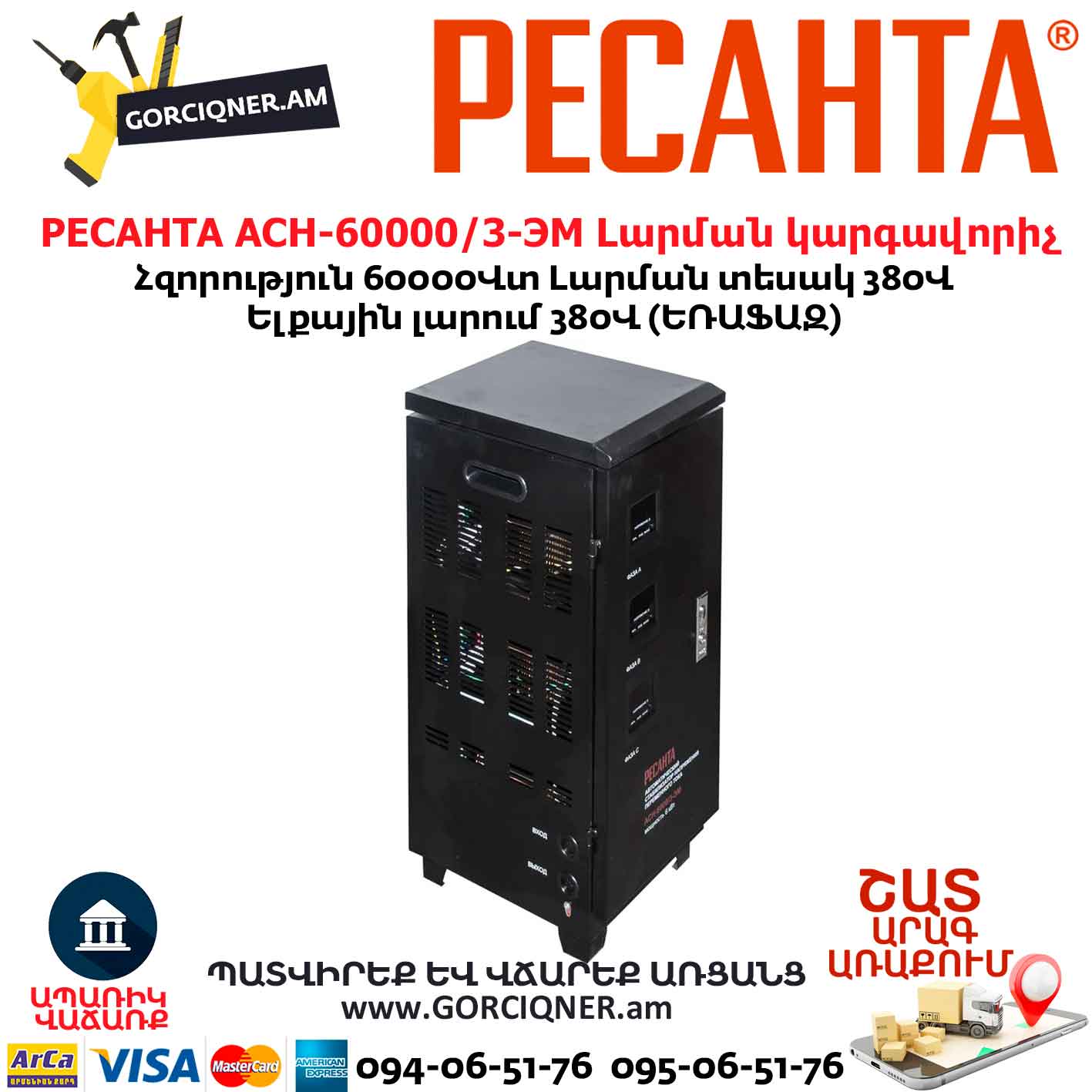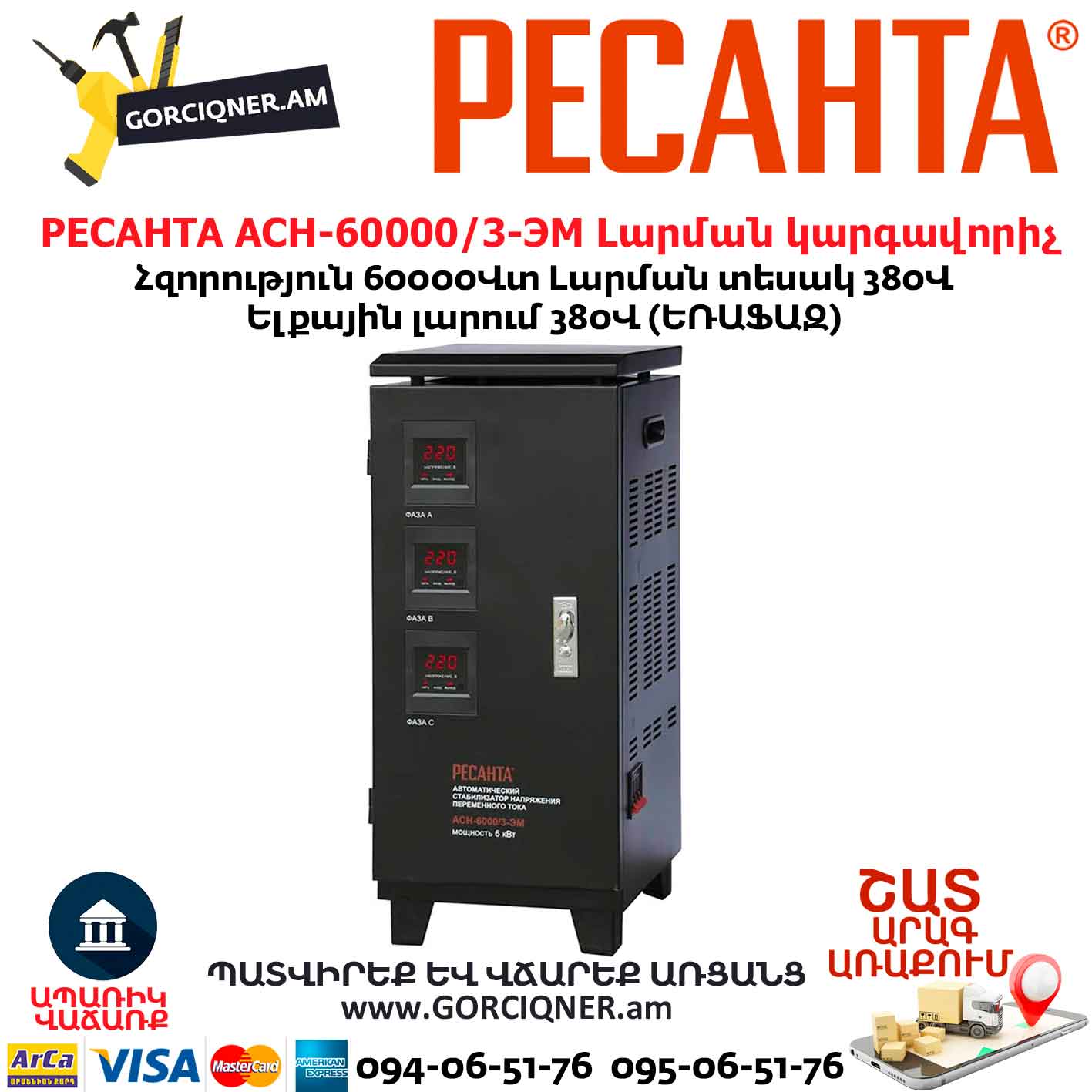 Հոսանքի լարման կարգավորիչ РЕСАНТА АСН-60 000/3-ЭМ