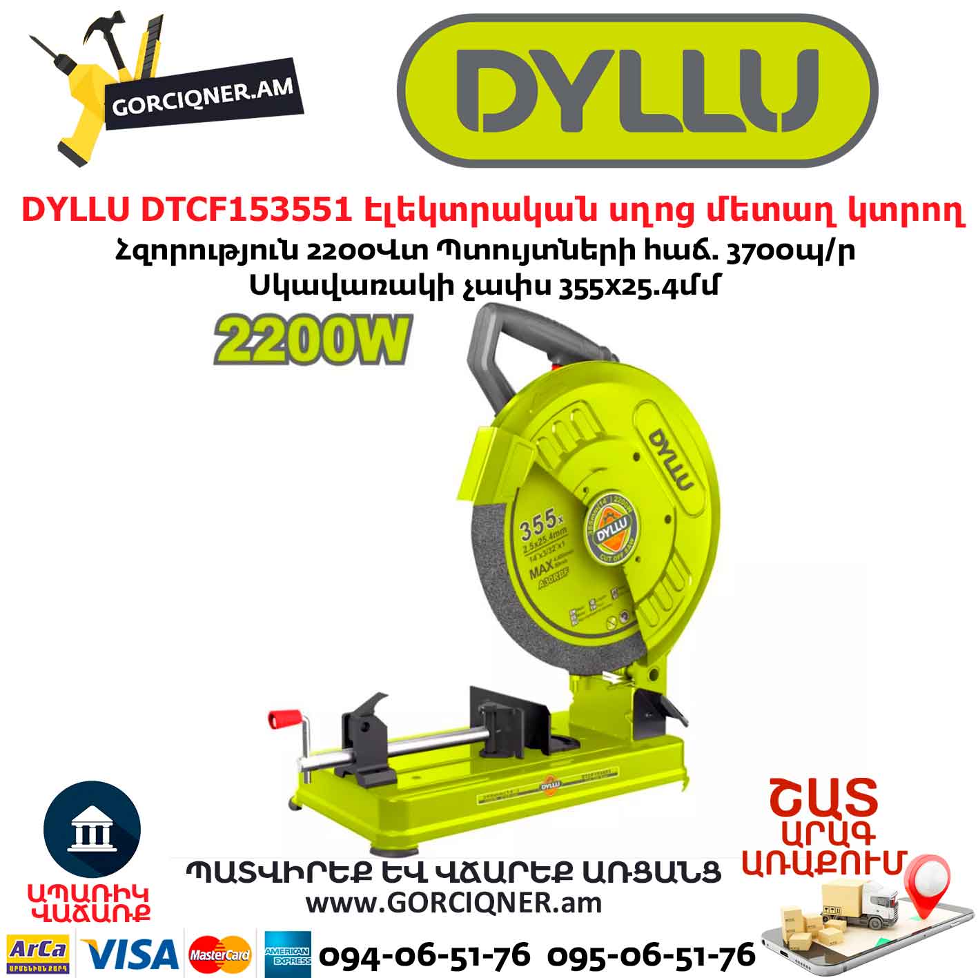 Էլեկտրական սղոց մետաղ կրող DYLLU DTCF153551 355մմ/2200Վտ