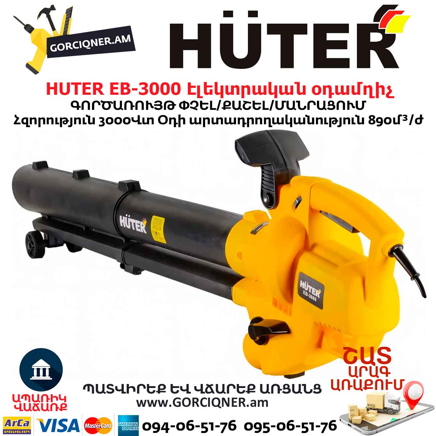 Էլեկտրական օդամղիչ HUTER EB-3000