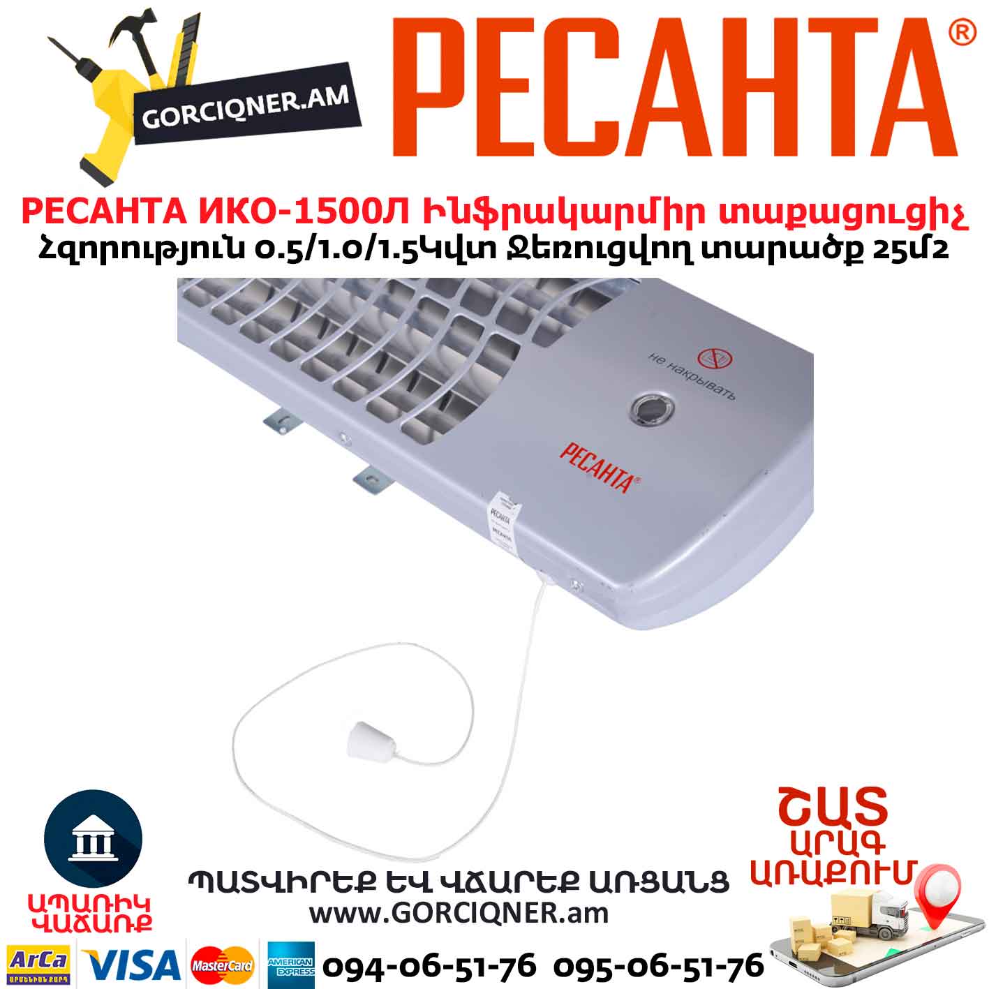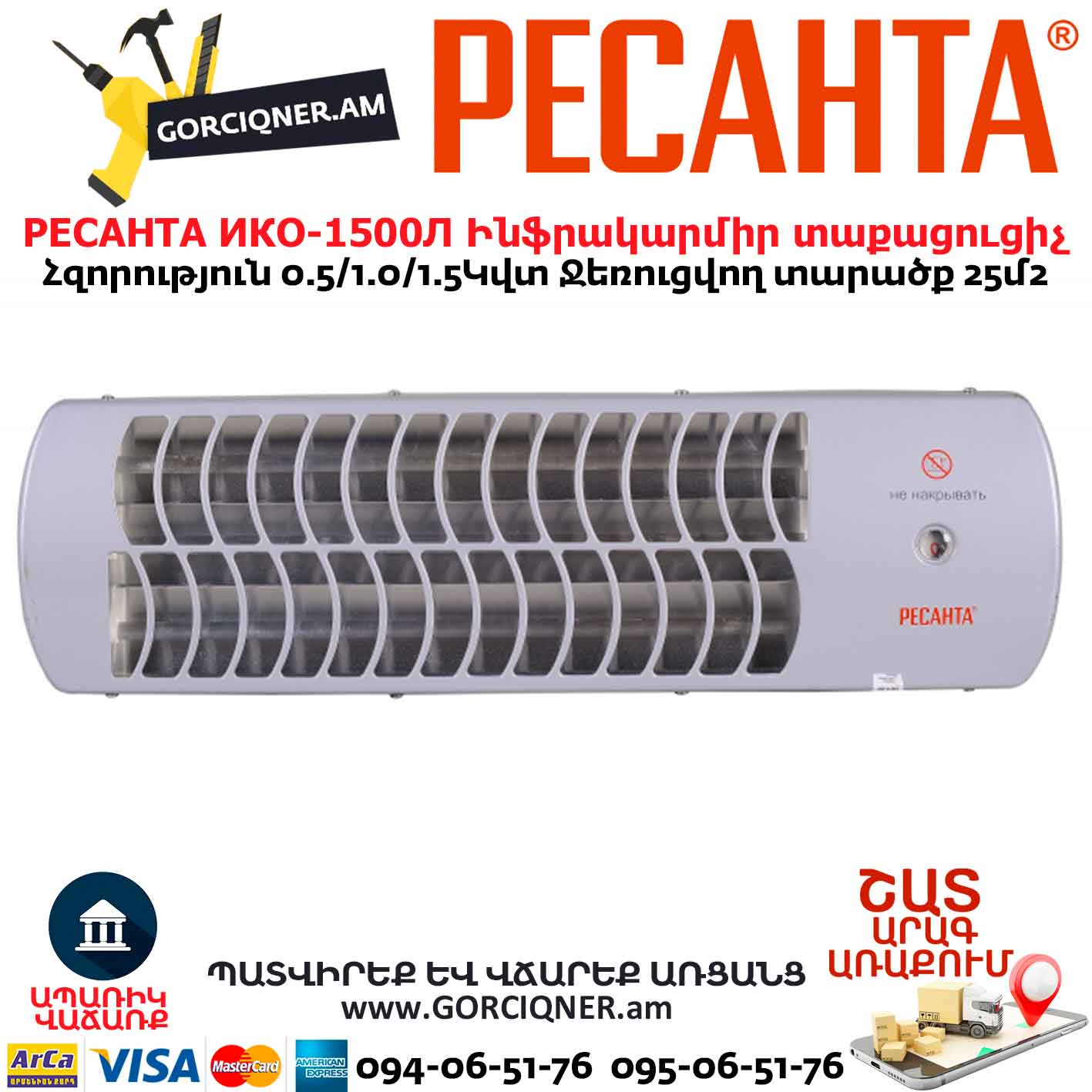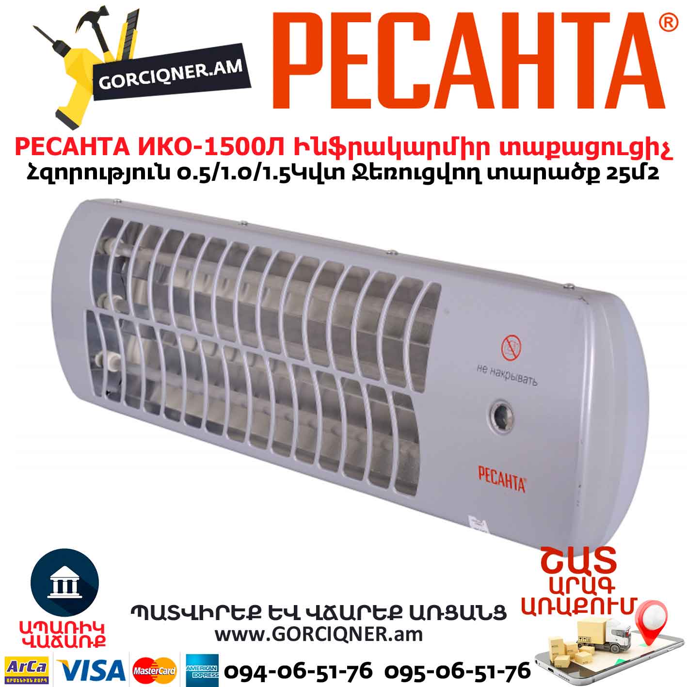 Ինֆրակարմիր տաքացուցիչ կվարցային РЕСАНТА ИКО-1500Л