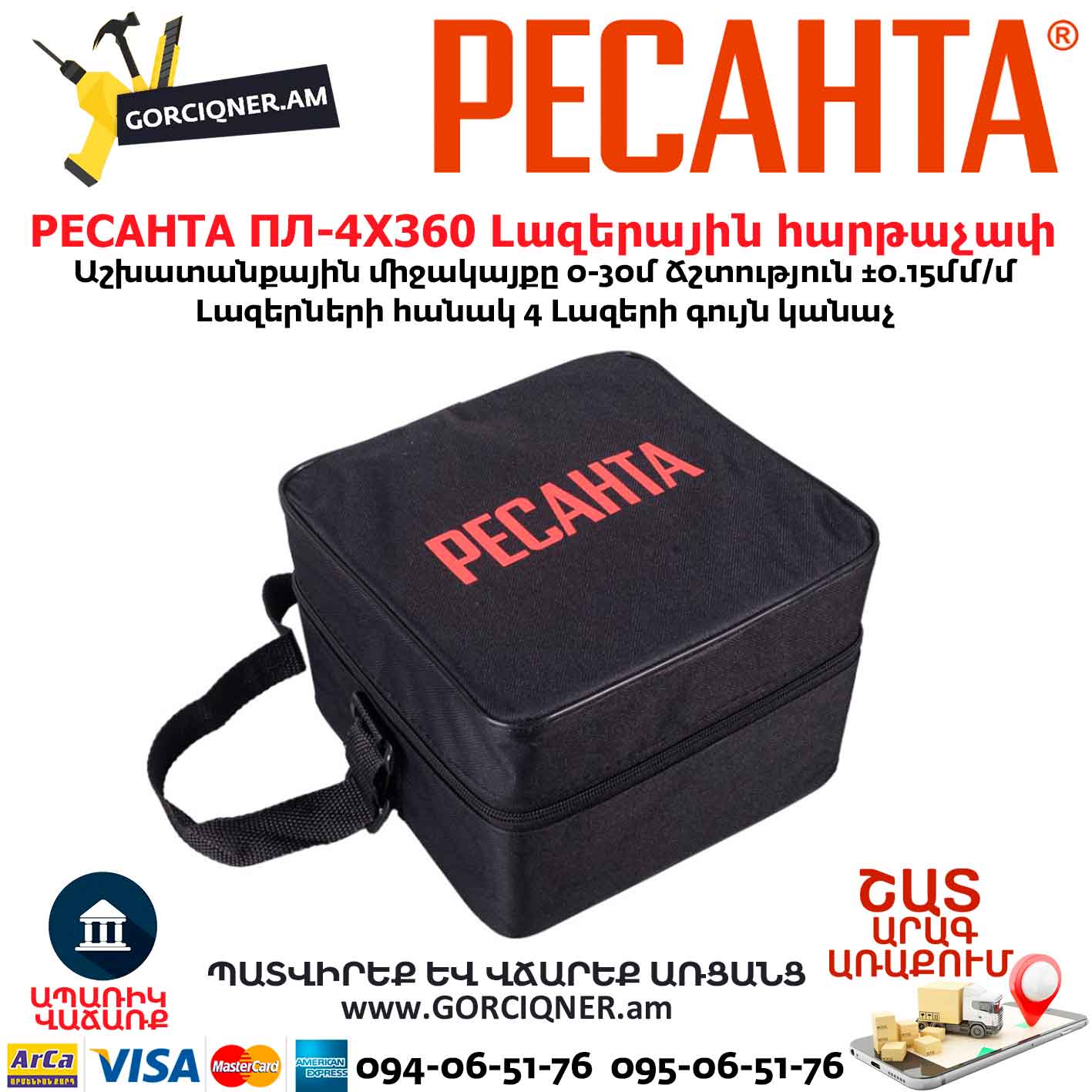 Լազերային հարթաչափ РЕСАНТА ПЛ-4Х360