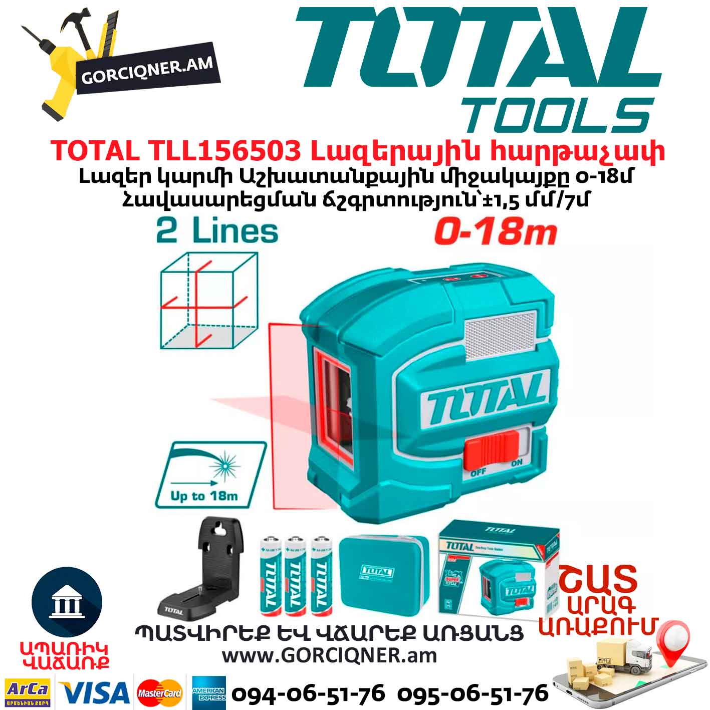 Լազերային հարթաչափ TOTAL TLL156503 0-18մ