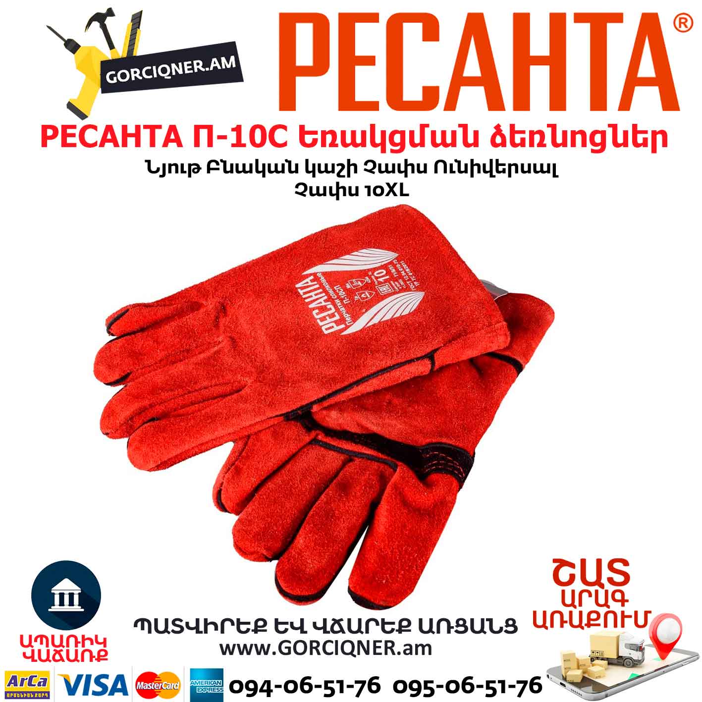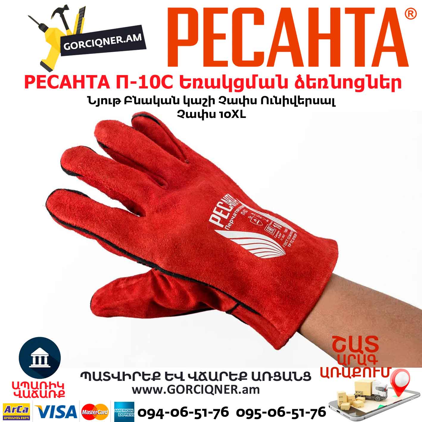 Կաշվից եռակցման ձեռնոց РЕСАНТА П-10СП