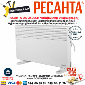 - Արագ տեղադրում – ջեռուցիչը տեղադրված է պատին կամ հատակին, կոմպլեկտեւմ ներառված է մոնտաժային հավաքածու: