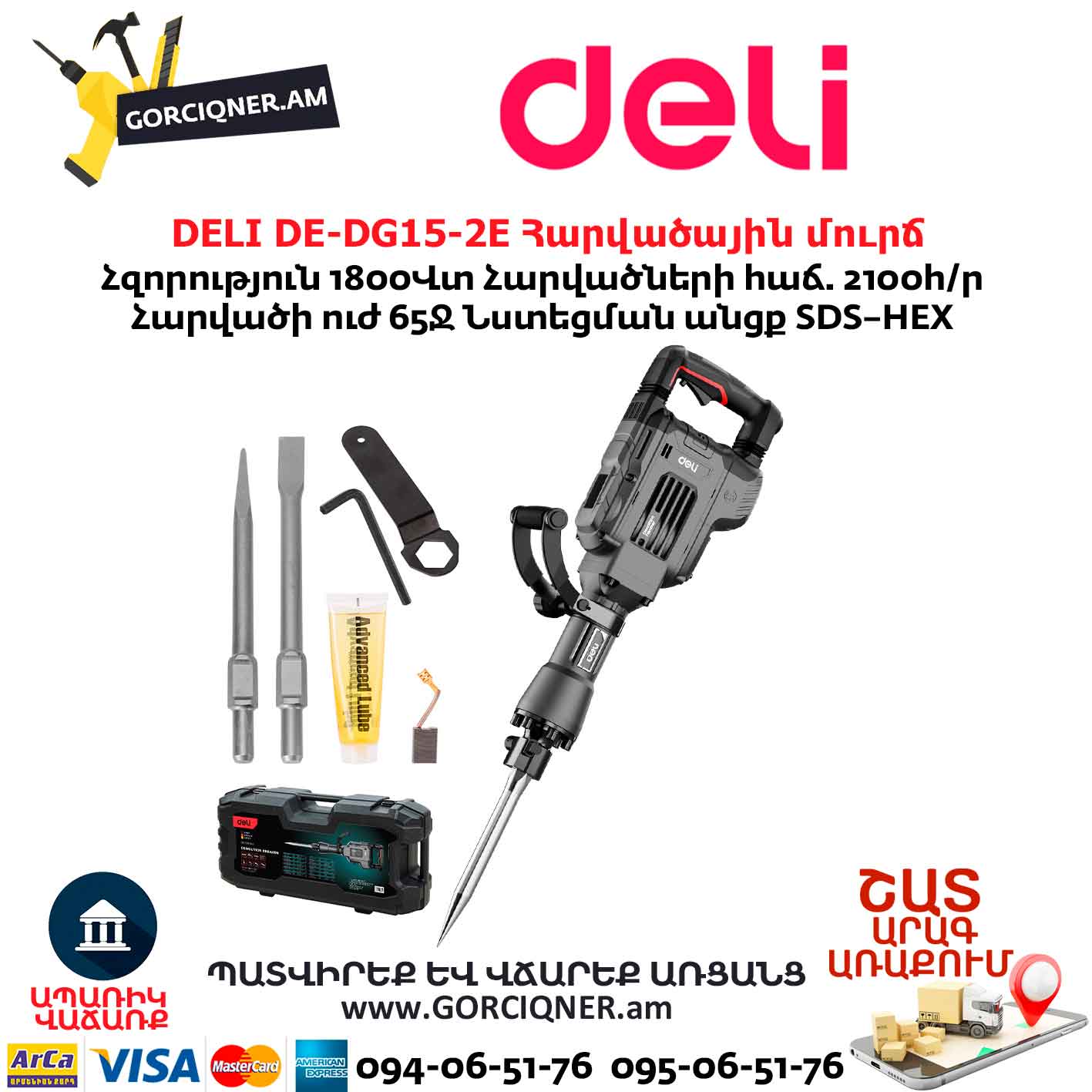 Հարվածային մուրճ DELI DE-DG15-2E 1800Վտ/65Ջ