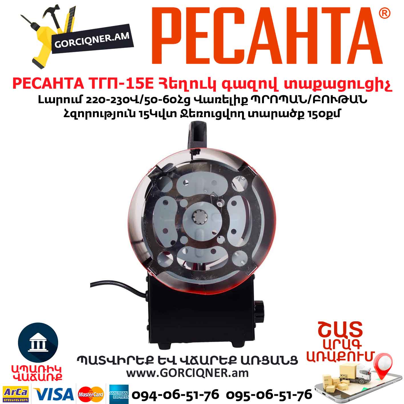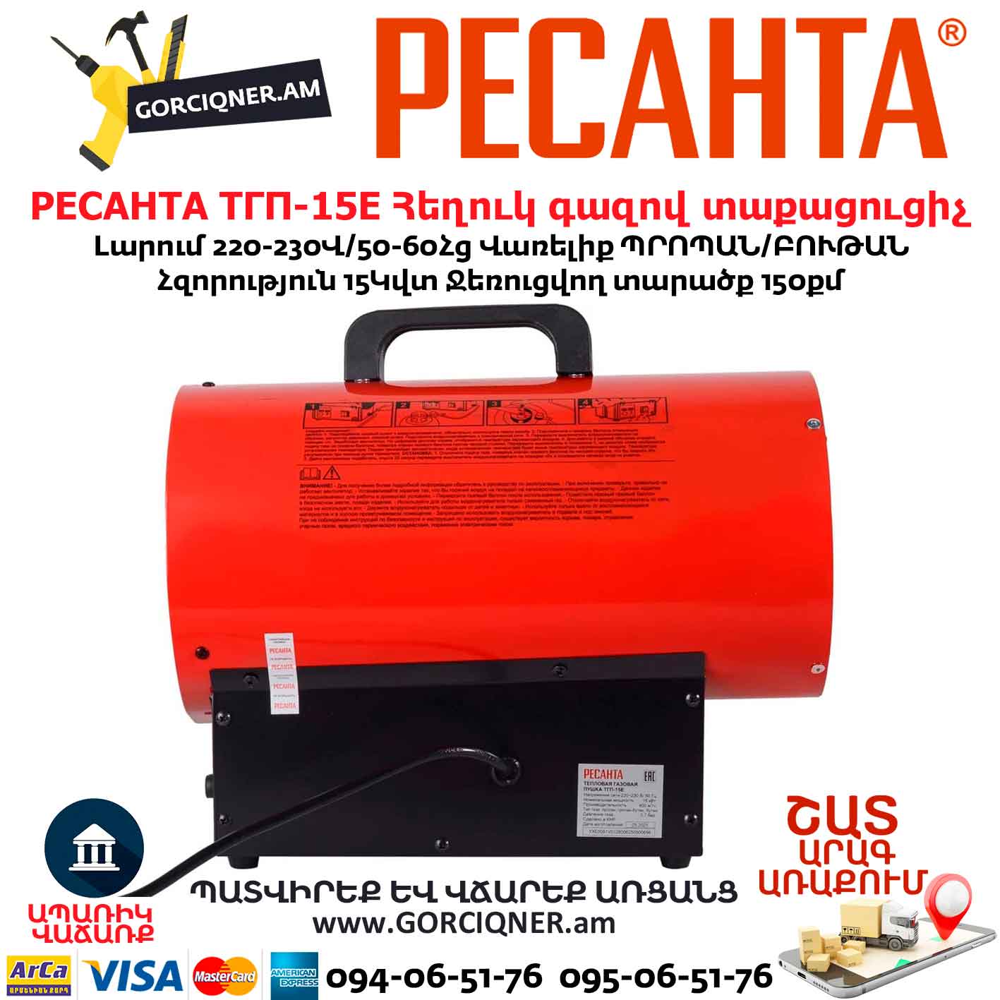 Հեղուկ գազով տաքացուցիչ РЕСАНТА ТГП-15E 15Կվտ/150մ² 67/1/80