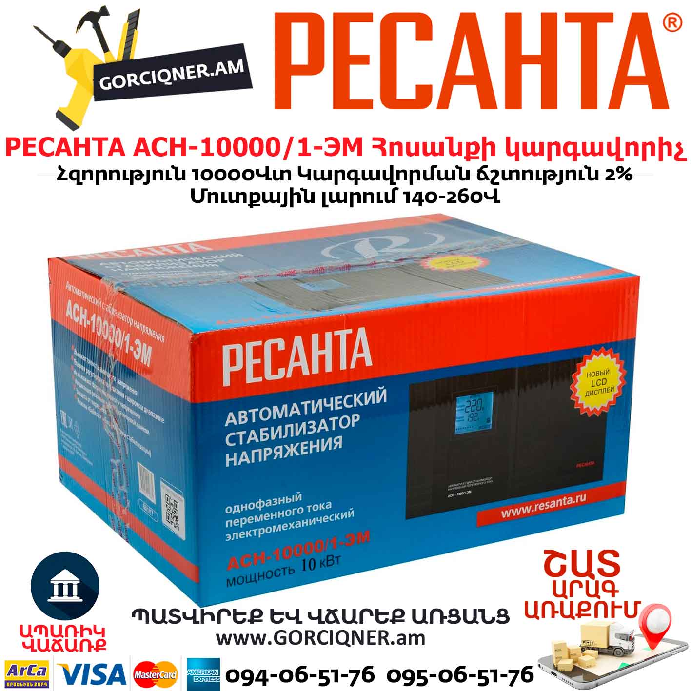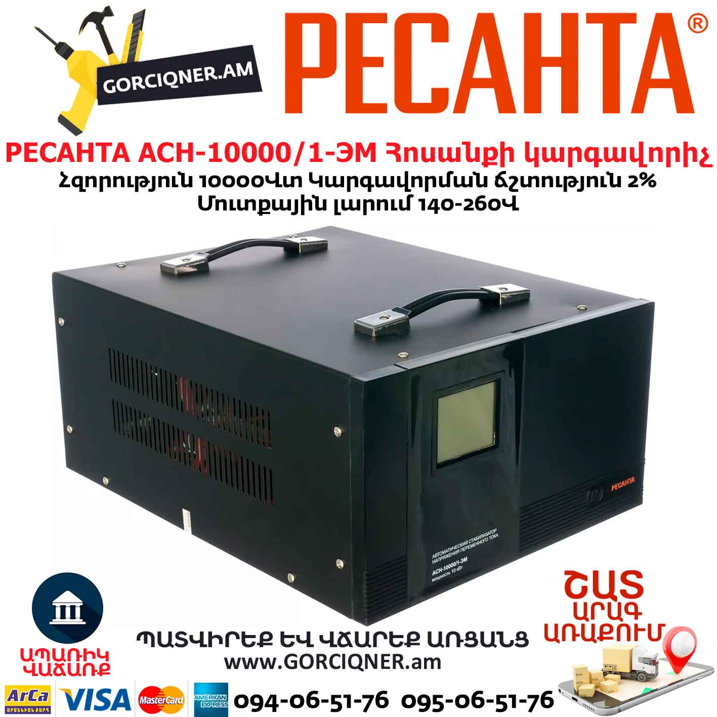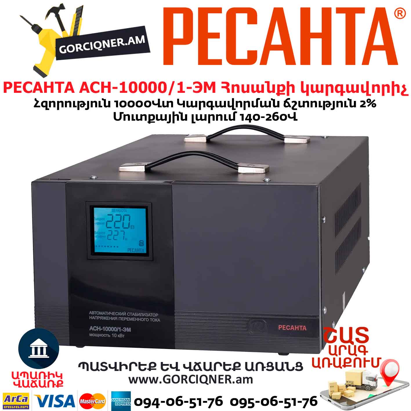 РЕСАНТА АСН-10000/1-ЭМ Հոսանքի կարգավորիչ