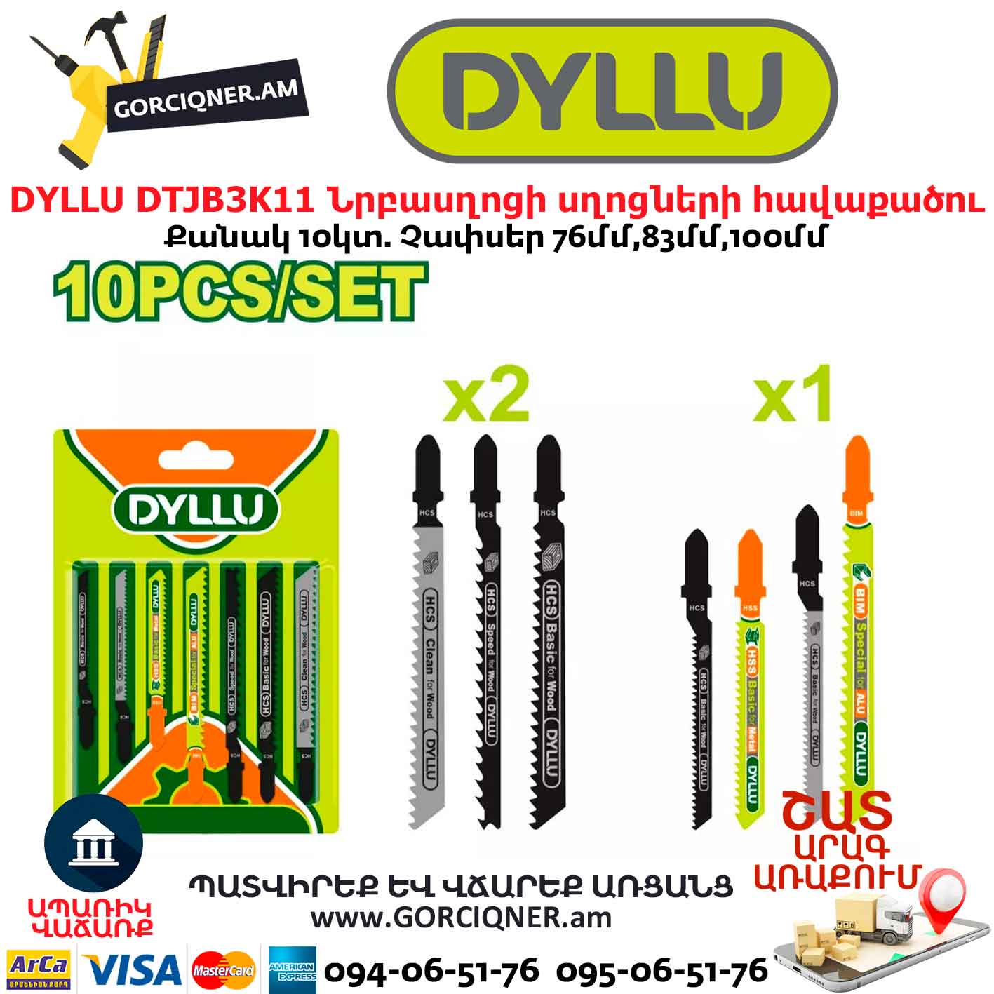 Նրբասղոցի սղոցների հավաքածու DYLLU DTJB3K11 76մմ,83մմ,100մմ 10Կտ