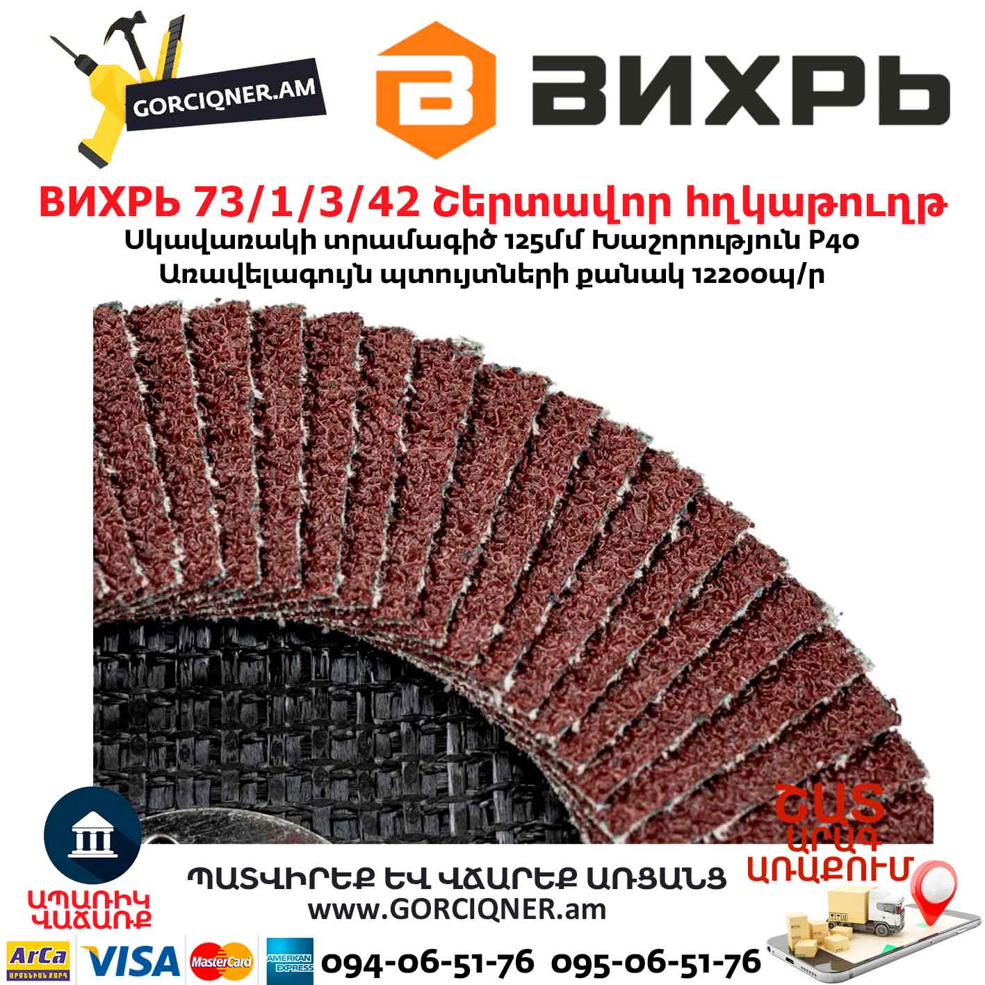 Շերտավոր հղկաթուղթ ВИХРЬ 73/1/3/42 125×22.2 մմ Р40