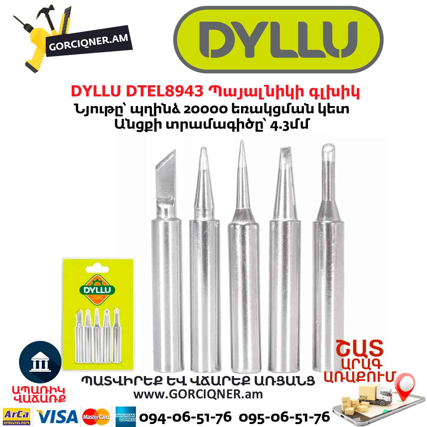 Պայալնիկի գլխիկ DYLLU DTEL8943 4.3մմ/5Հատ