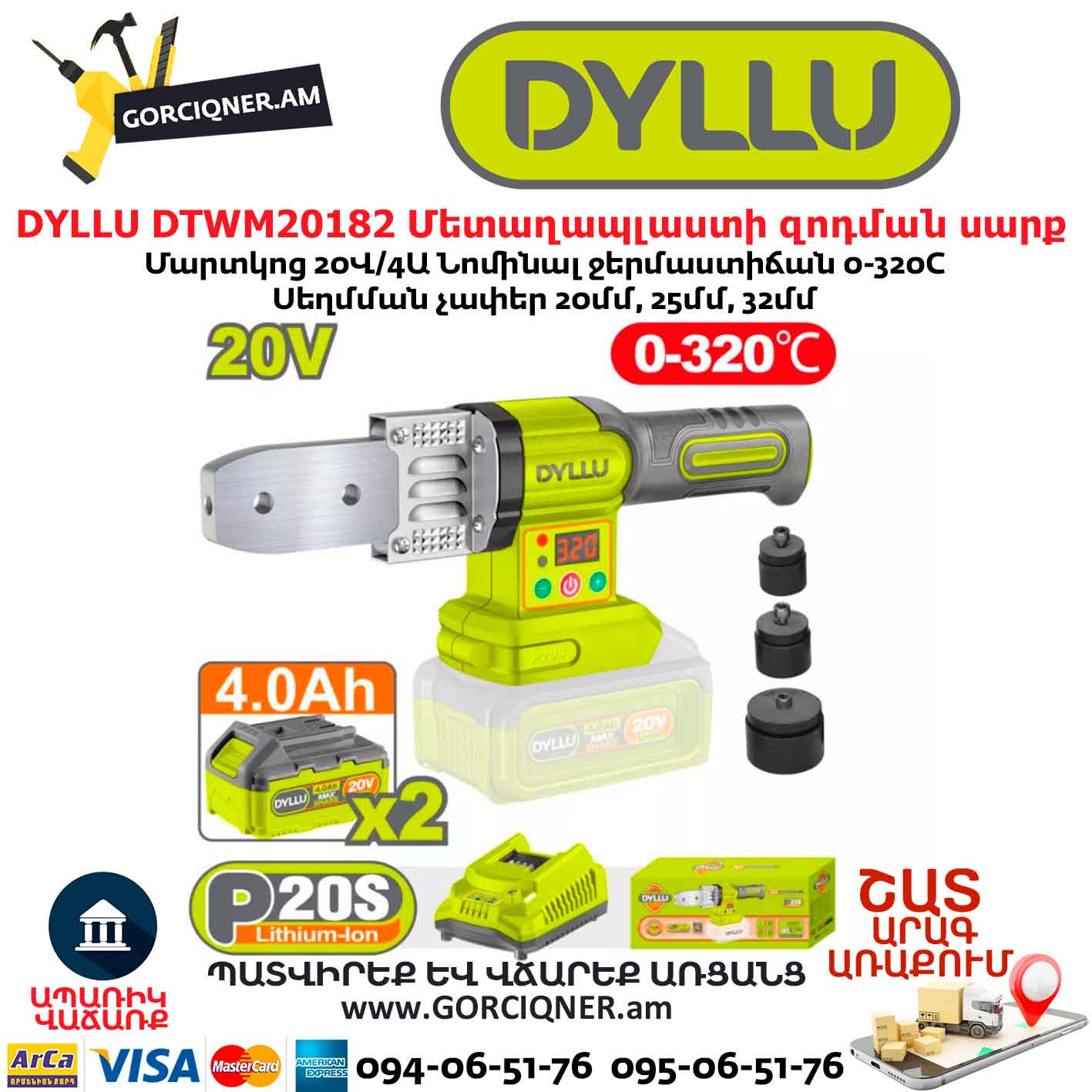 Պլաստիկ խողովակների եռակցման սարք մարտկոցով DYLLU DTWM20182 20Վ 20-32մմ 20Վ